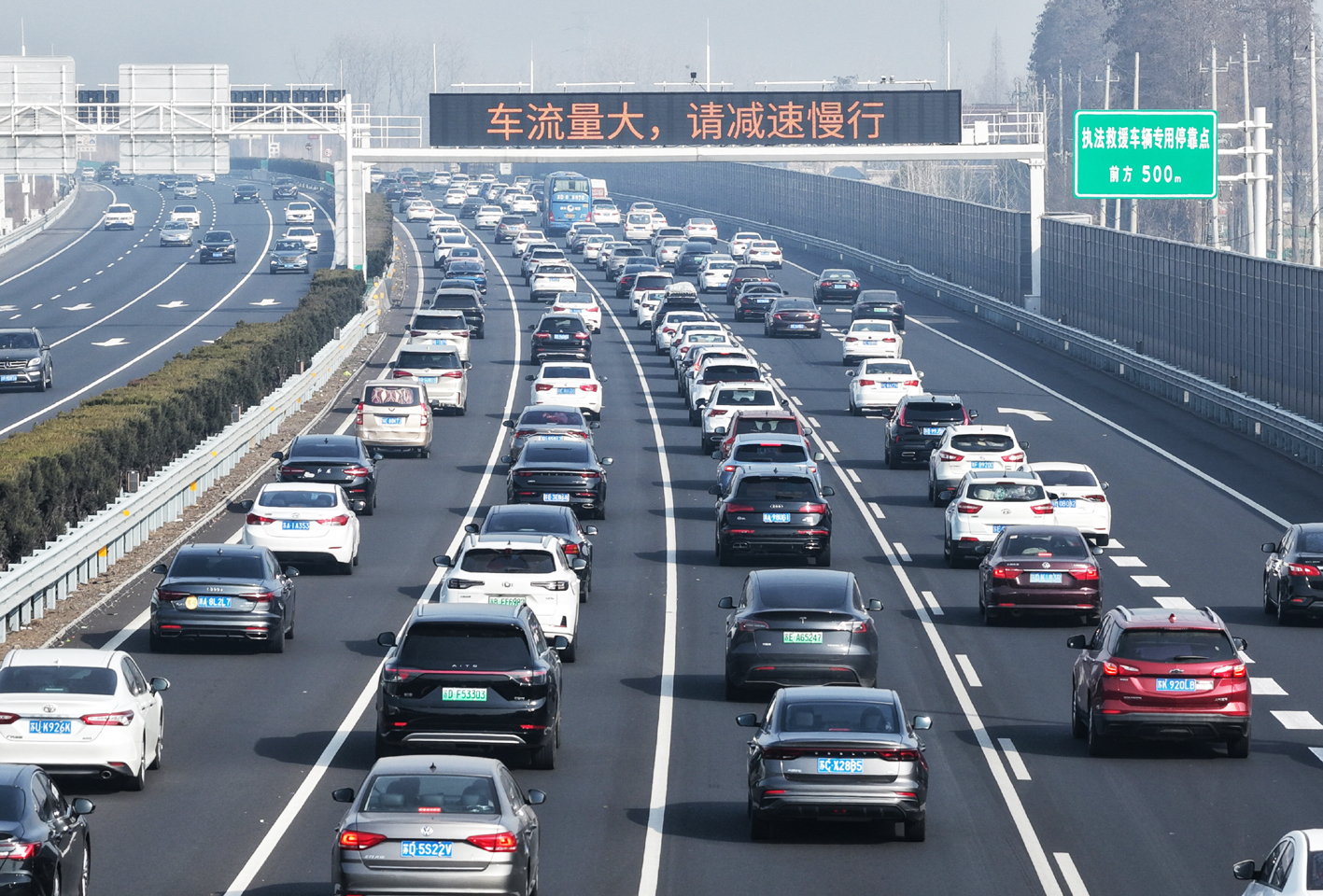 2月15日,随着新春佳节临近,扬州境内的多条高速公路迎来节前车流高峰。