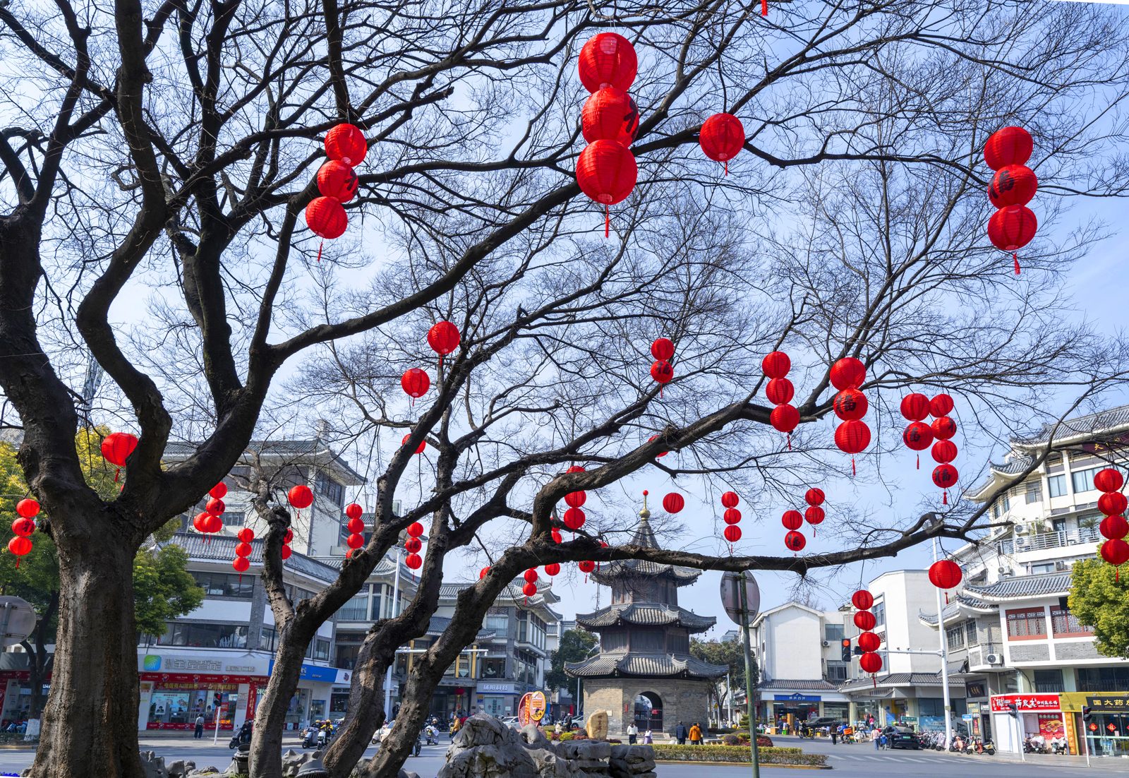 文昌阁四周挂上大红灯笼。季杰 程曦 摄