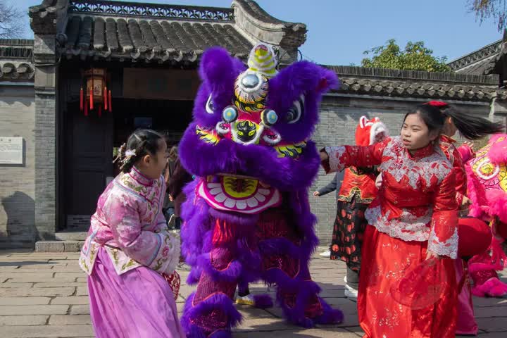 2月17日,扬州何园东门外锣鼓喧天、热闹非凡,一场精彩纷呈的传统舞狮表演火热上演,正式拉开景区新春系列活动序幕。