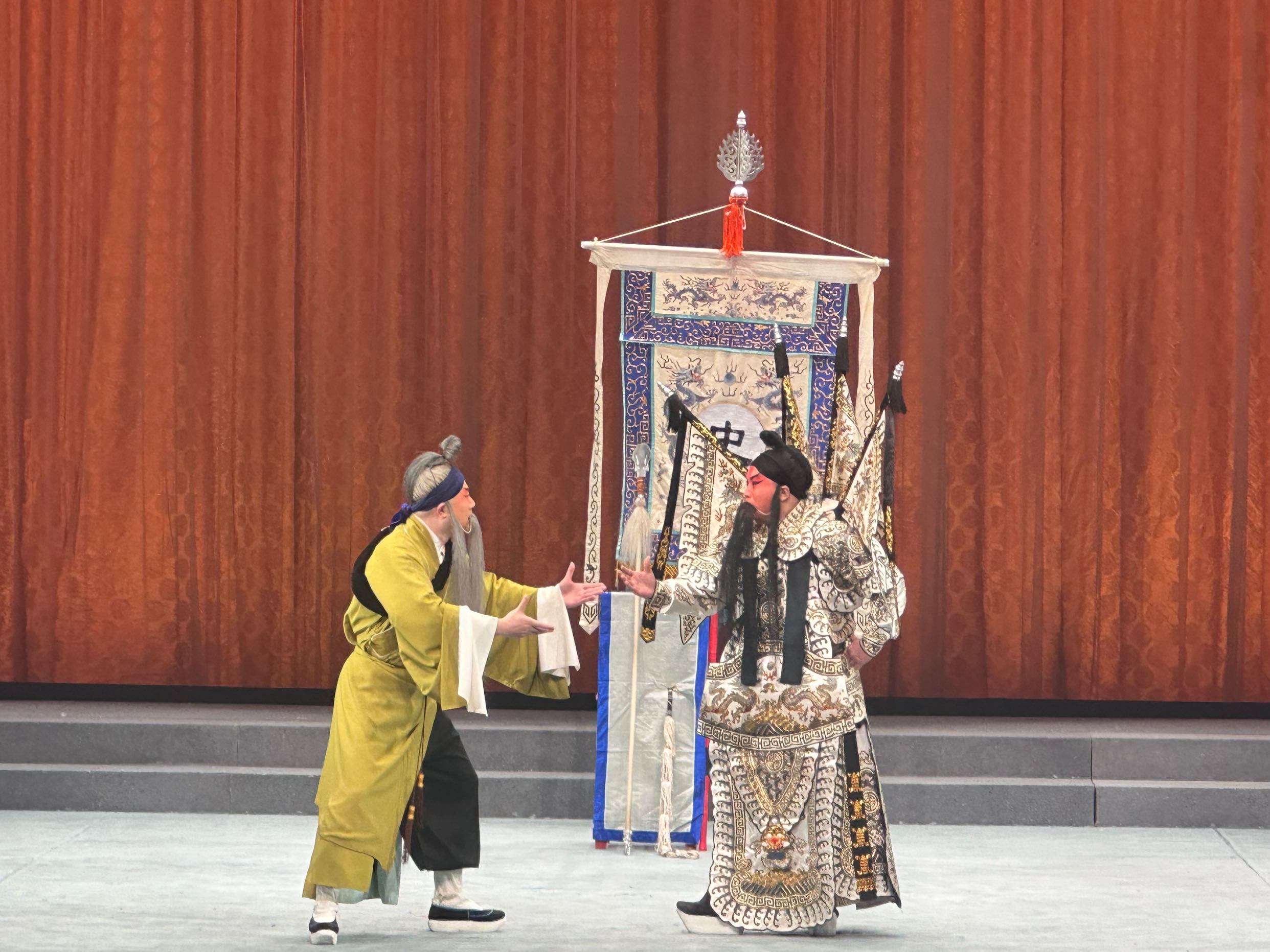 最让观众热血沸腾的,当属张艺瑾、李楚祺、薛晓东献演的《史可法·沉江》。当一身戎装、背插大靠的史可法登场,一股悲壮慷慨、民族大义之气瞬间弥漫全场。特别是那惊险的“摔僵尸”,引得满堂惊叹叫好。