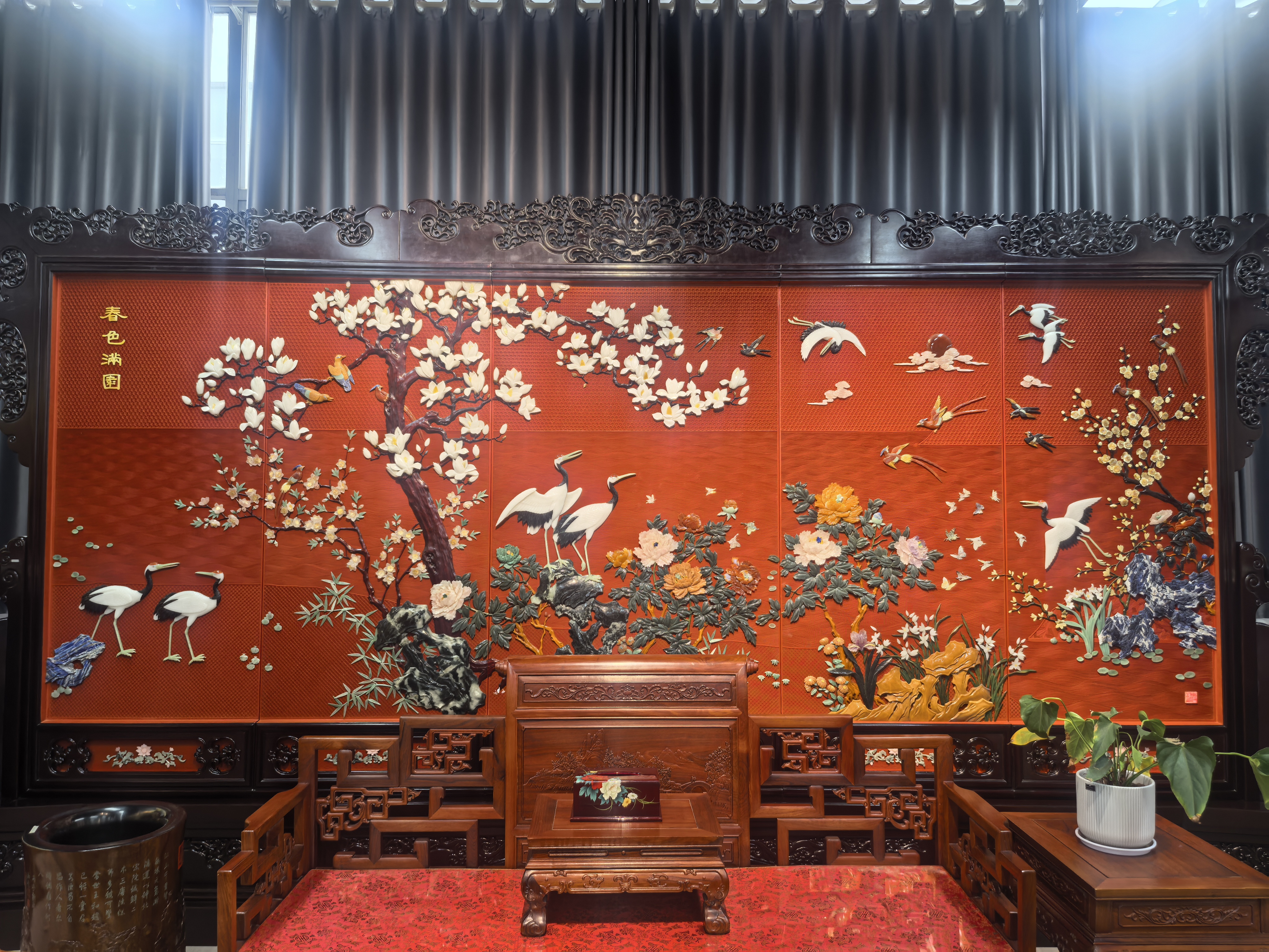 扬州漆器厂建立于1955年,经过数代人70年的艰苦奋斗,逐步形成了门类齐全、产品丰富、人才辈出的基本格局。历年来,数以千计的漆器地屏、屏风、壁画在各类重要场馆、高端接待场所、星级宾馆酒店陈列收藏。
