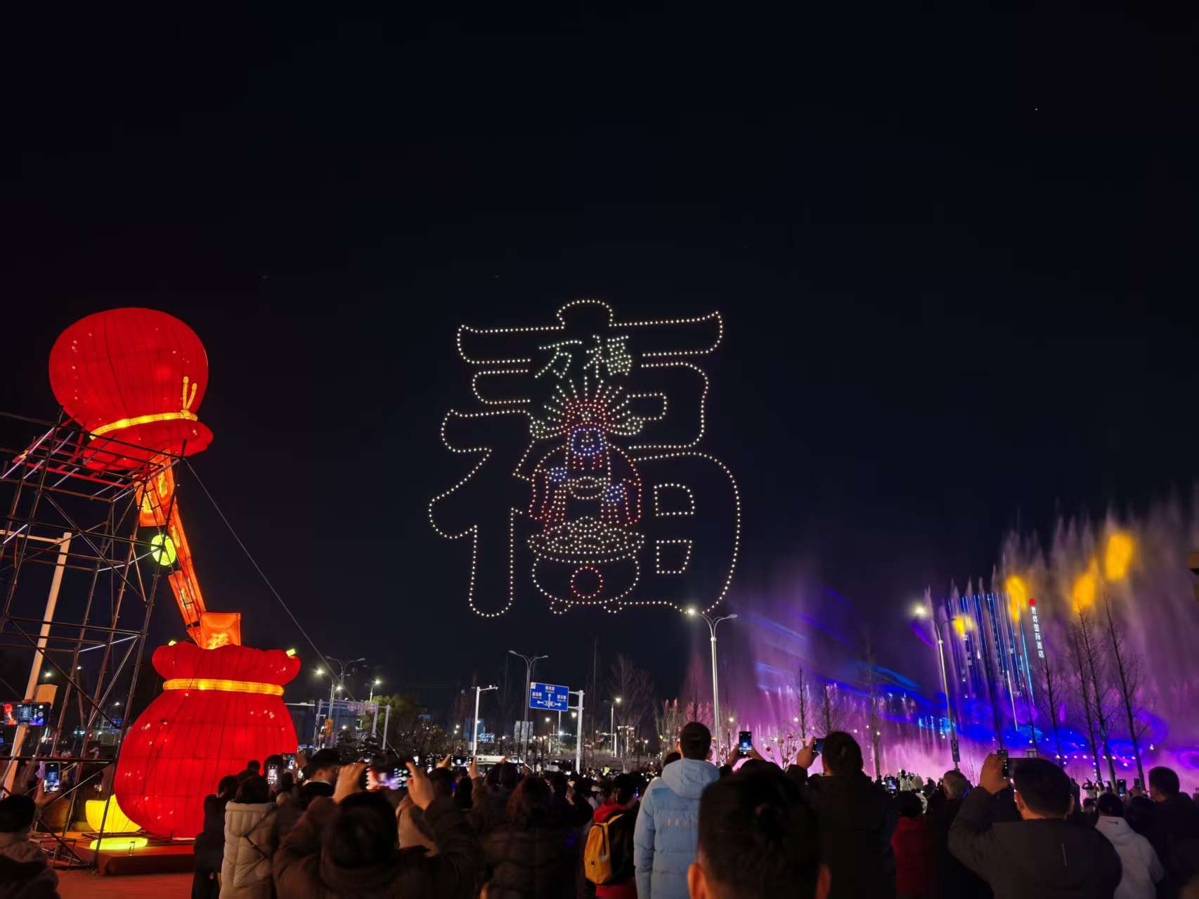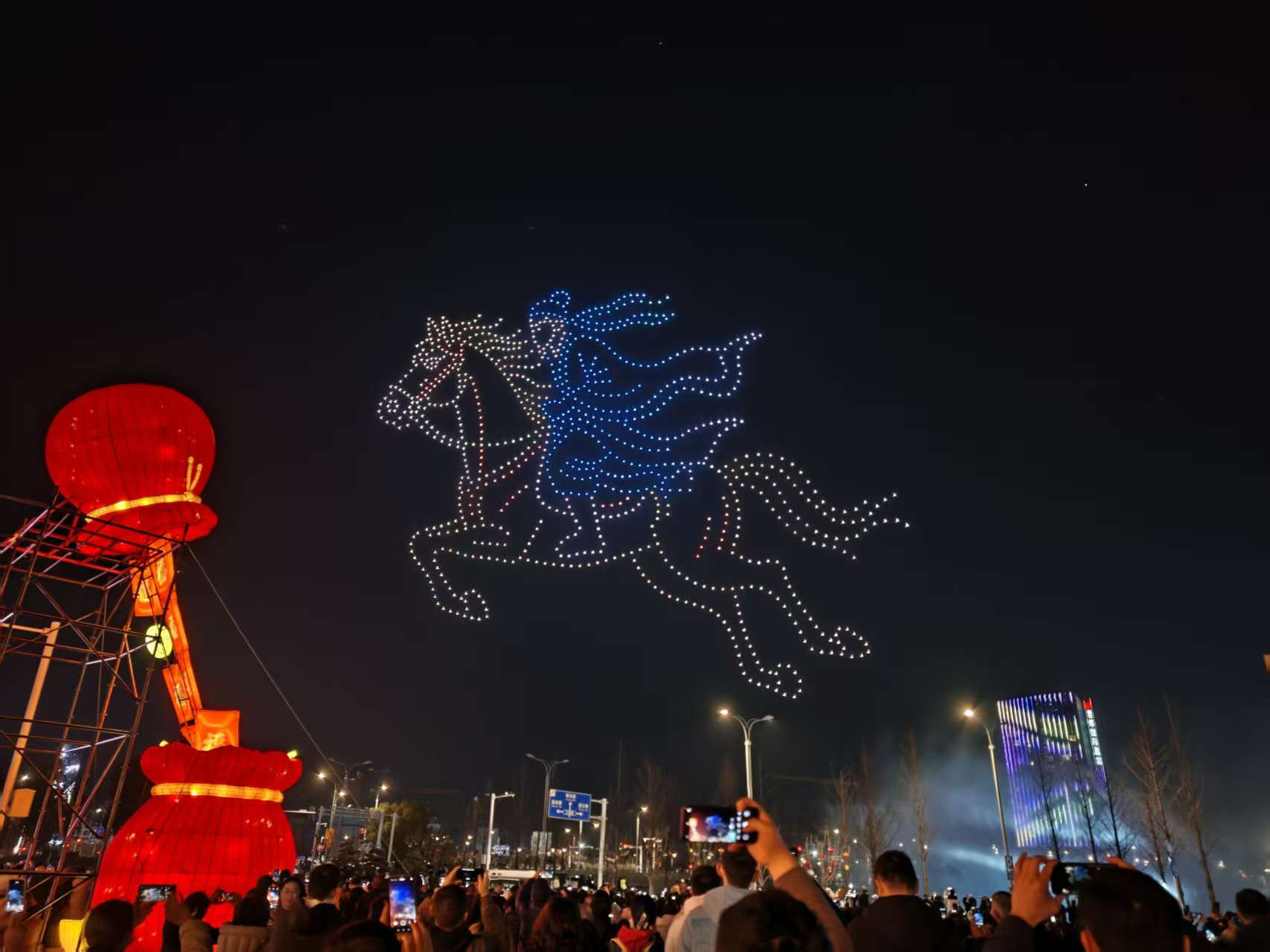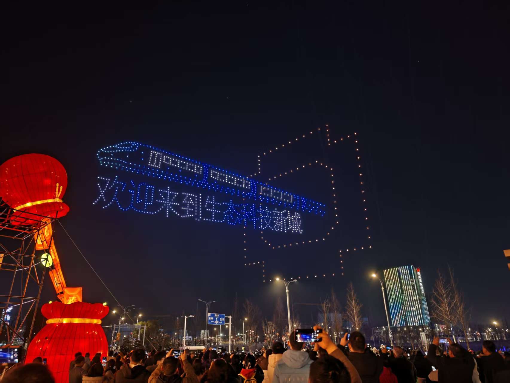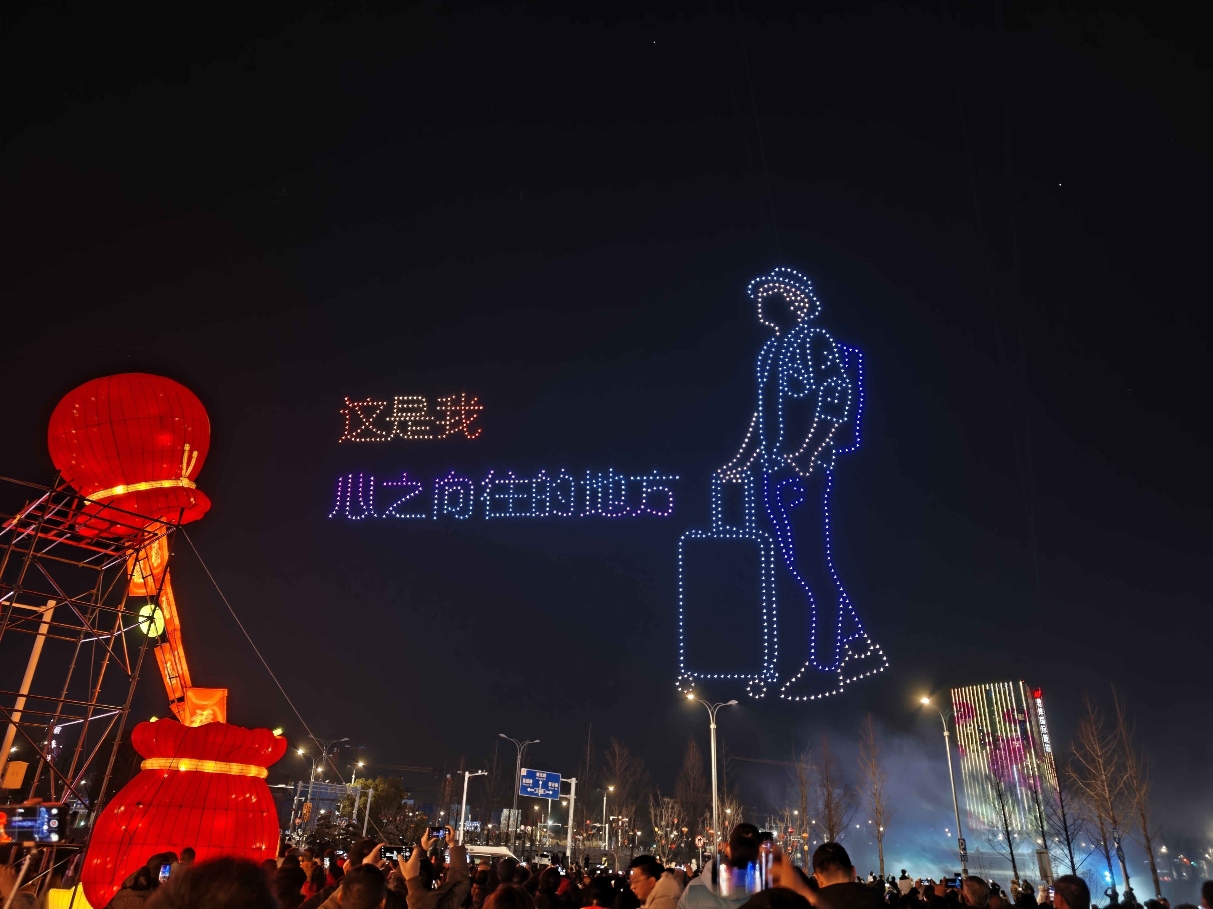 2月21日,农历大年初五,生态科技新城双都大厦南广场上空流光溢彩。夜幕降临,1000架无人机腾空而起,以夜空为画布,以灯光为笔墨,为市民和游客献上一场视觉盛宴,也展示了城市的热情与魅力。