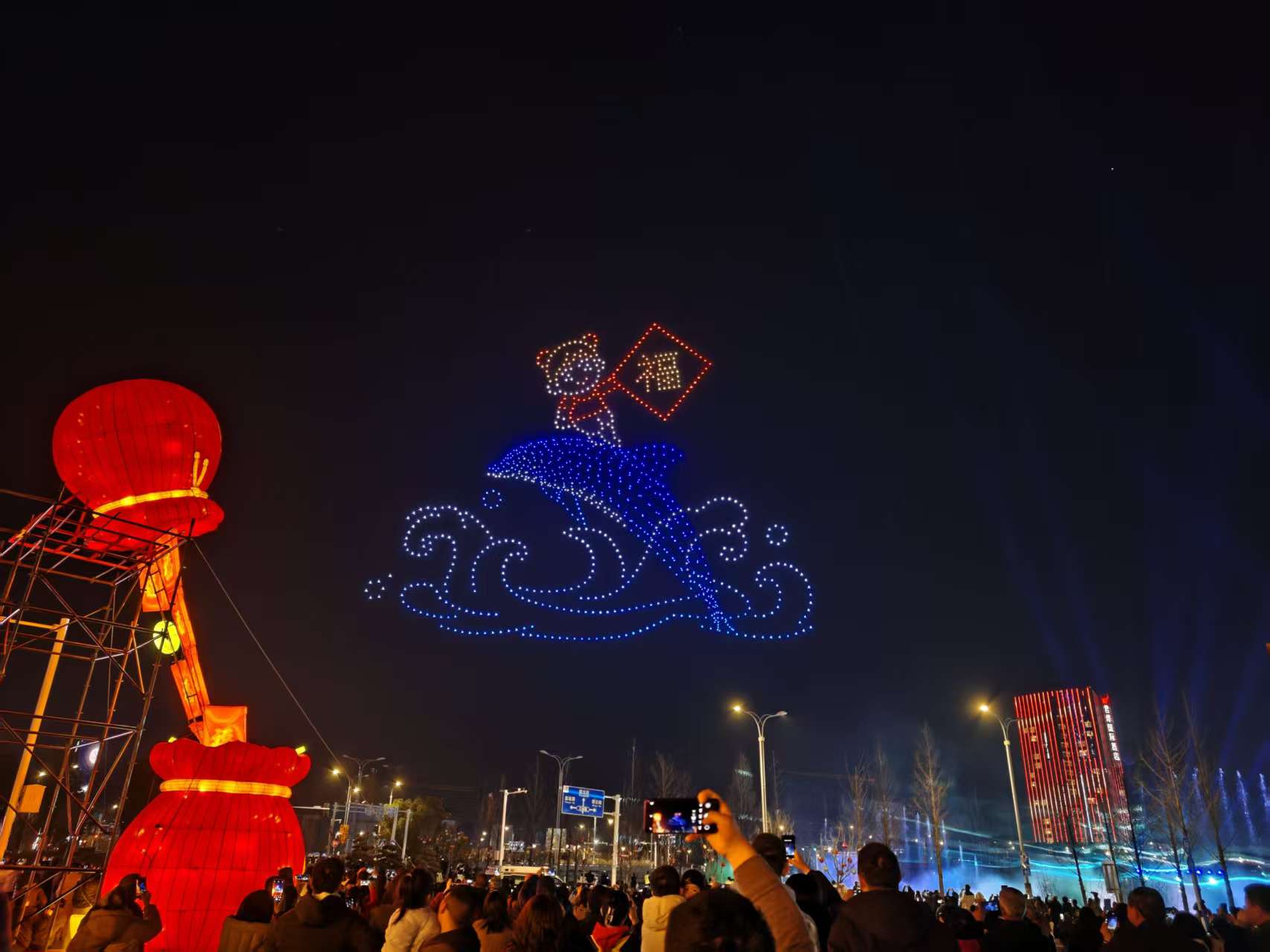 “这个寓意好,正月初五迎财神,无人机送福到家门口。”来自江都区的李先生特意带着孙子赶来观看,他告诉记者,听说生态科技新城有无人机表演,今天特地记着日子来看。