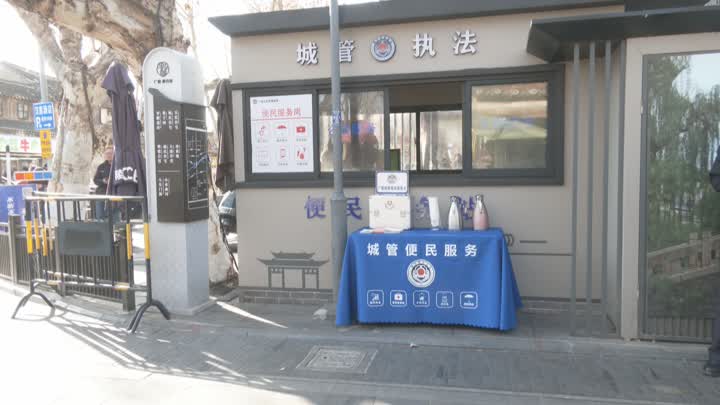 广陵城管局东关中队中队长陈枫表示,他们开设了彩衣街和皮市街两处便民服务岗亭,可以为游客提供咨询、热水、便民充电、休憩等简单的服务。
