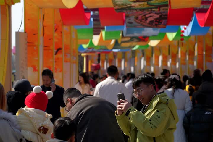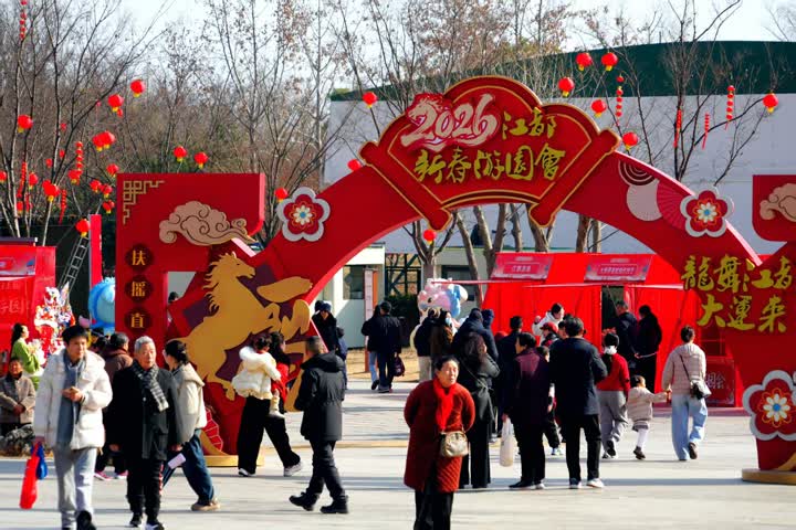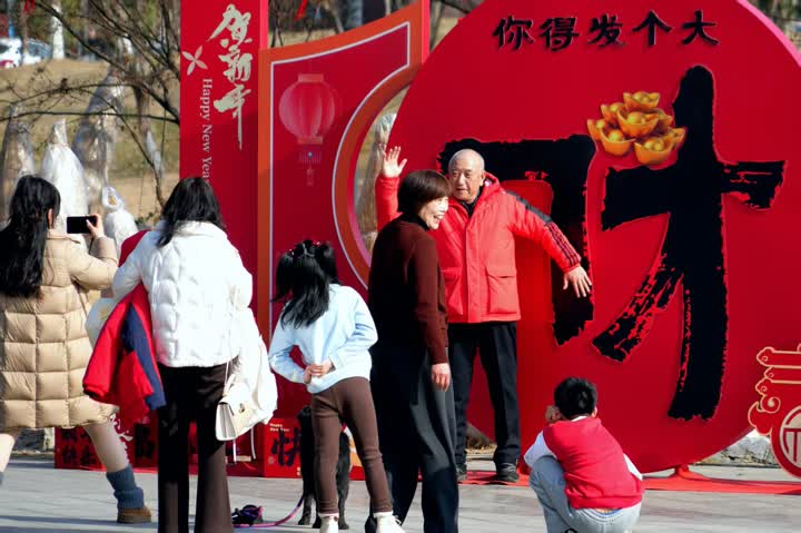 市民扶老携幼拍照打卡,定格团圆笑脸,在热闹年味中欢度新春佳节,沉浸式感受江都文旅融合的活力。