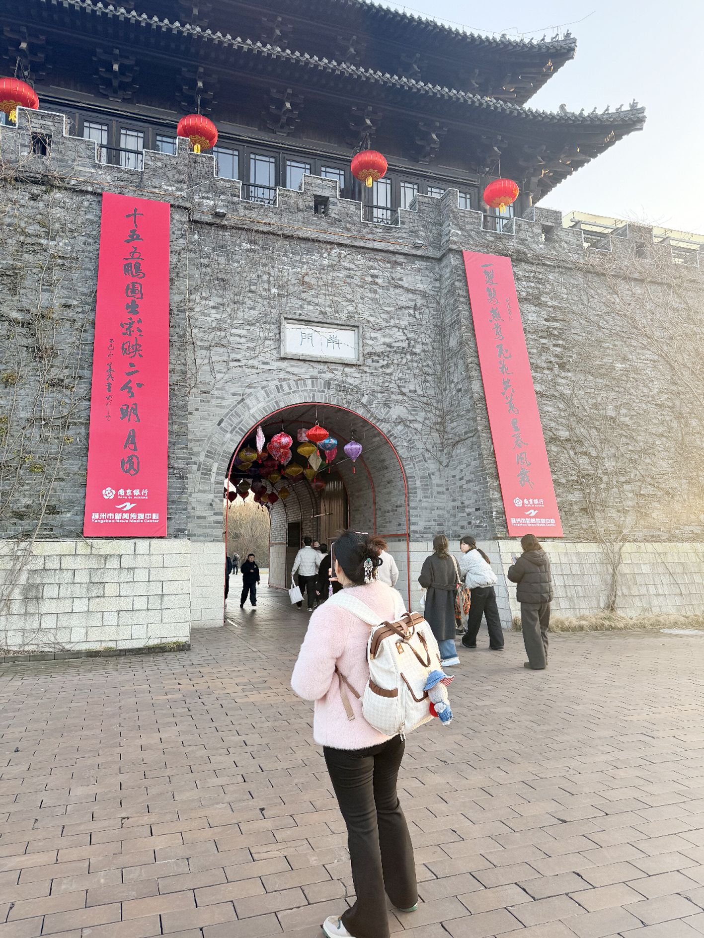 “宋夹城太美了,红春联配上远处的城墙轮廓,既有宋韵古风的雅致,又有马年新春的热闹,氛围感直接拉满。”来自江西的游客谢女士说,“对联写得极妙,既勾勒出扬州春日燕舞飞花的灵动景致,又融入了‘二分明月’等文化符号,我把宋夹城城门春联的照片发给老家的亲友们看,大家都赞不绝口。”