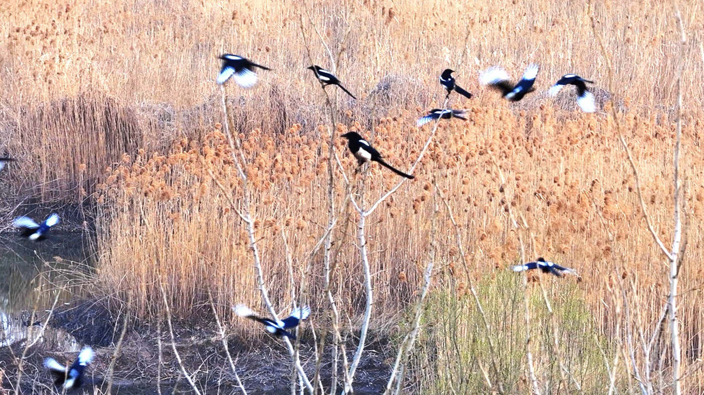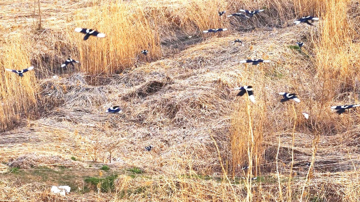 芦苇荡里成群结队的喜鹊。崔根元 摄