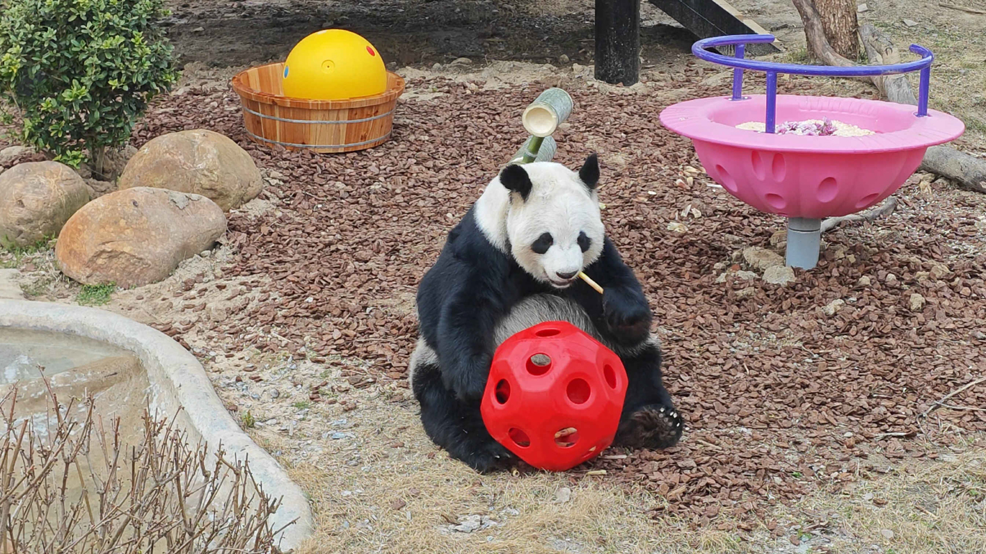 除了“晴晴”成为当天的焦点,枣林湾包括“晴晴”在内的6只大熊猫也集体亮相。这6只国宝大熊猫作为仪征文旅的“活名片”,常年吸引着游客目光。按年龄计算,园内6只大熊猫中,“念念”“玖玖”“香竹”均为8岁,“春俏”12岁,“胖妞”11岁,“晴晴”19岁。