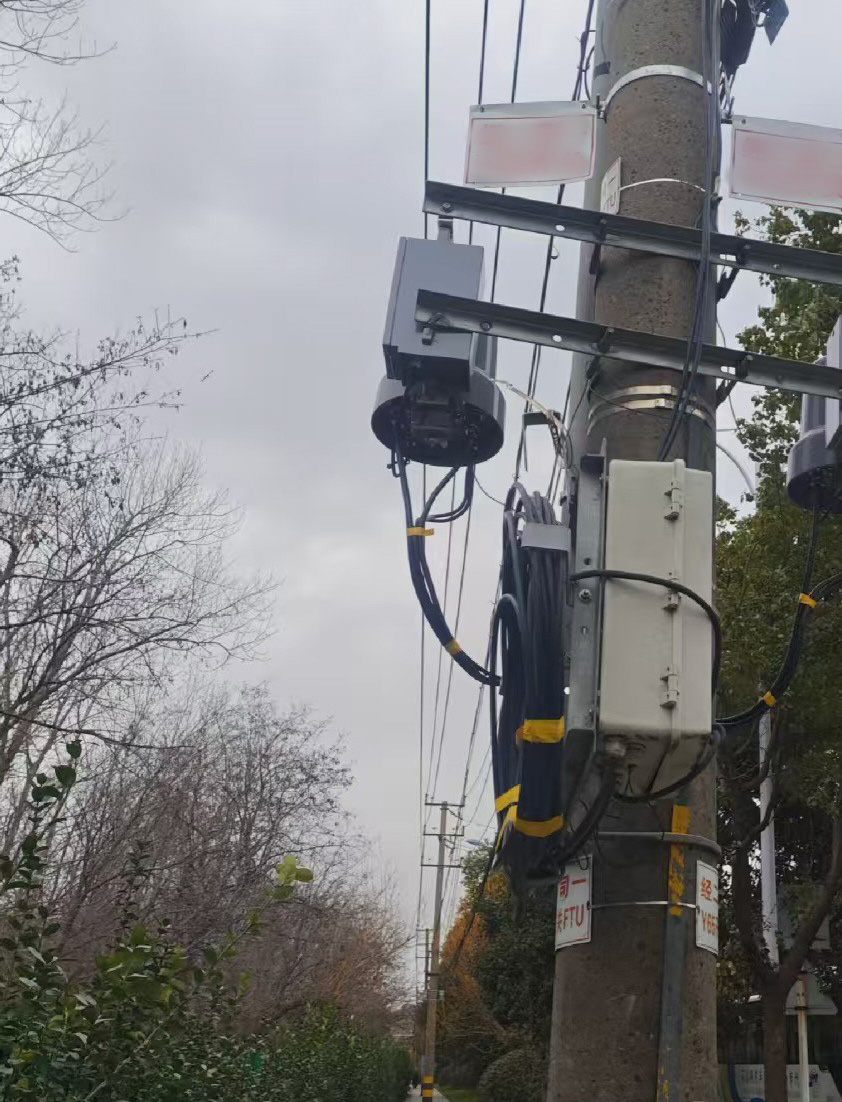 记者前往现场进行了探访。在十字路口西侧约20米处,有一根圆形水泥线杆,约2米高处安装了一只接线箱,从箱子里延伸出来的一段线缆形成一个圈,正好位于一人高处。由于线杆位于人行道中央,两侧都可以通过,当行人从南侧路过时,确有被线缆套住的危险。