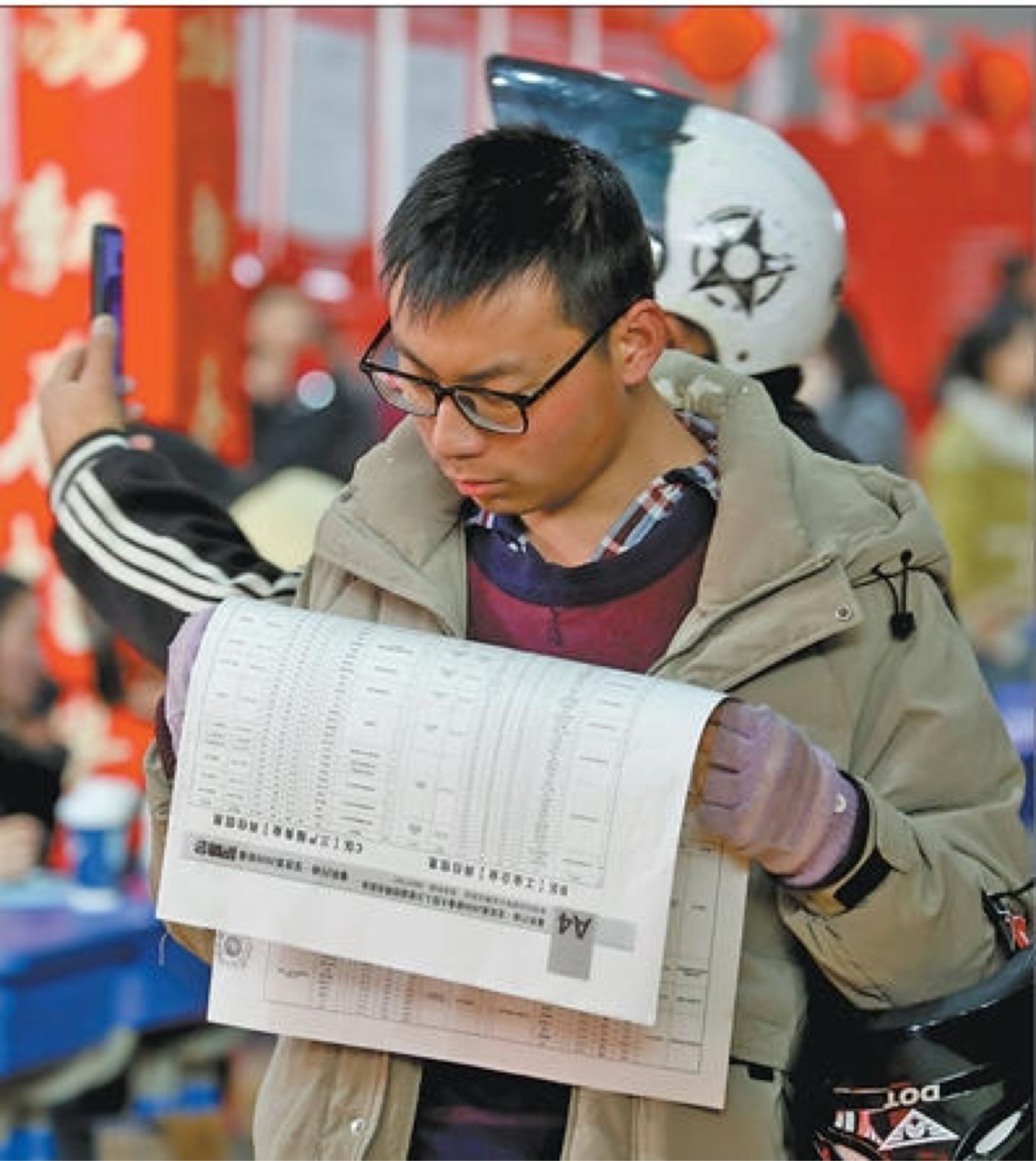 2月24日,《人民日报》二版图片新闻报道了宝应新春大型招聘会场景,图为一求职者正在仔细阅读相关招聘就业信息。2月22日,扬州市宝应县举行“春风送岗促就业真情相助暖民心”新春大型人力资源招聘洽谈会,240家单位进行现场招聘,提供电缆、纺织、电子信息及服务业等5200多个岗位,吸引众多求职者到场应聘。