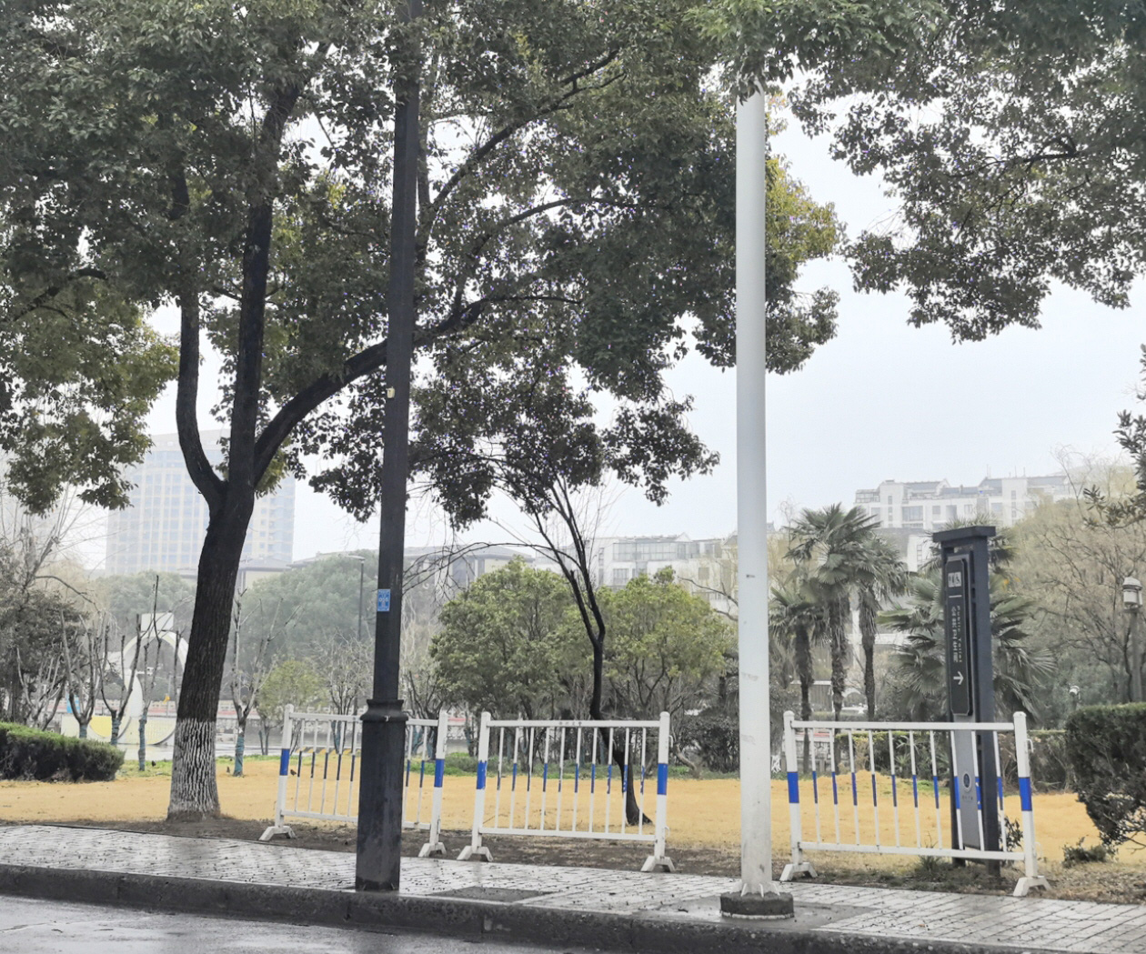 24日,记者再次来到古运河边这片草坪探访,现场看到草坪外围放置了多个隔离栏,草坪内无私家车停放。