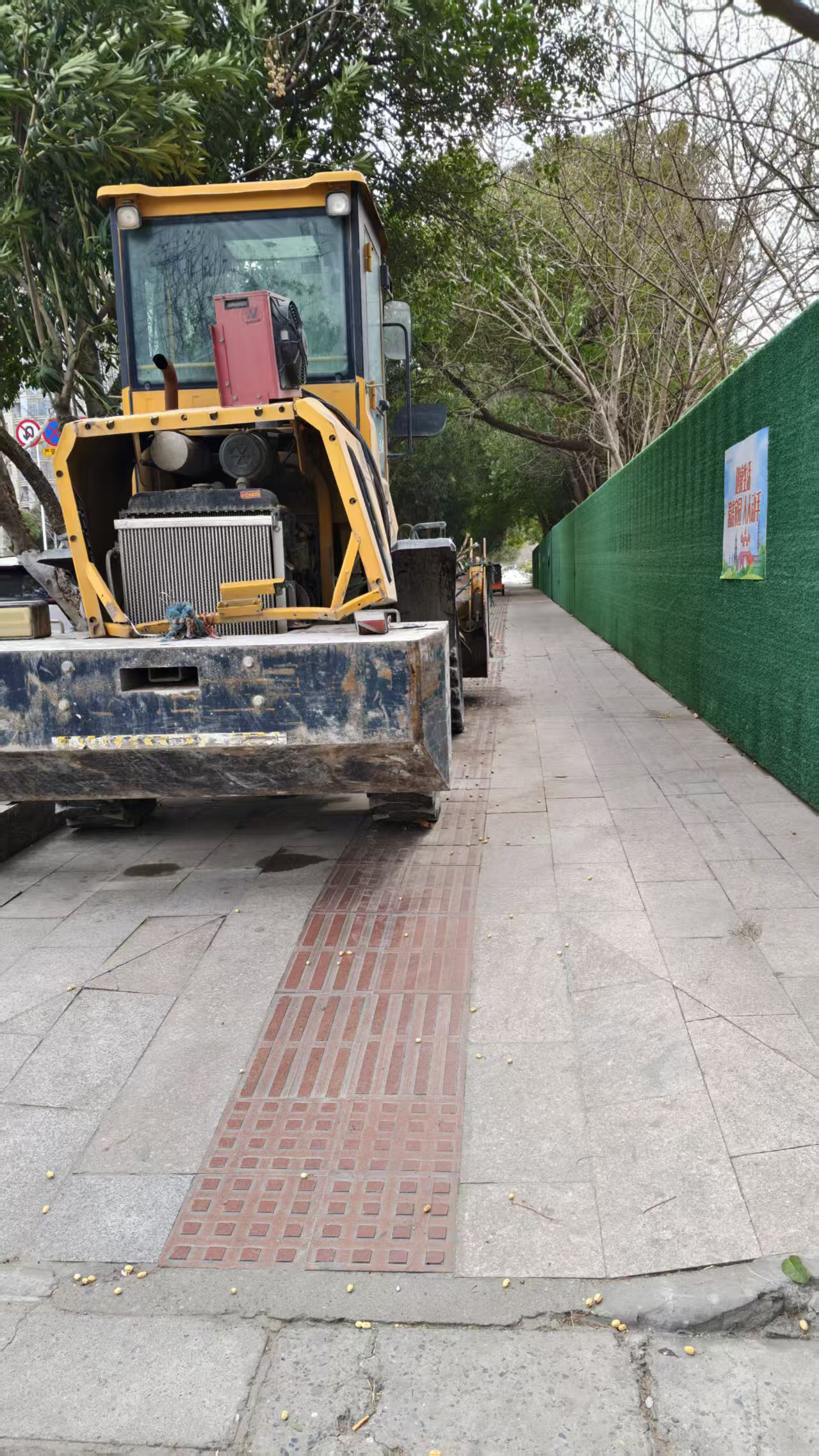 人行道上停放的施工车辆