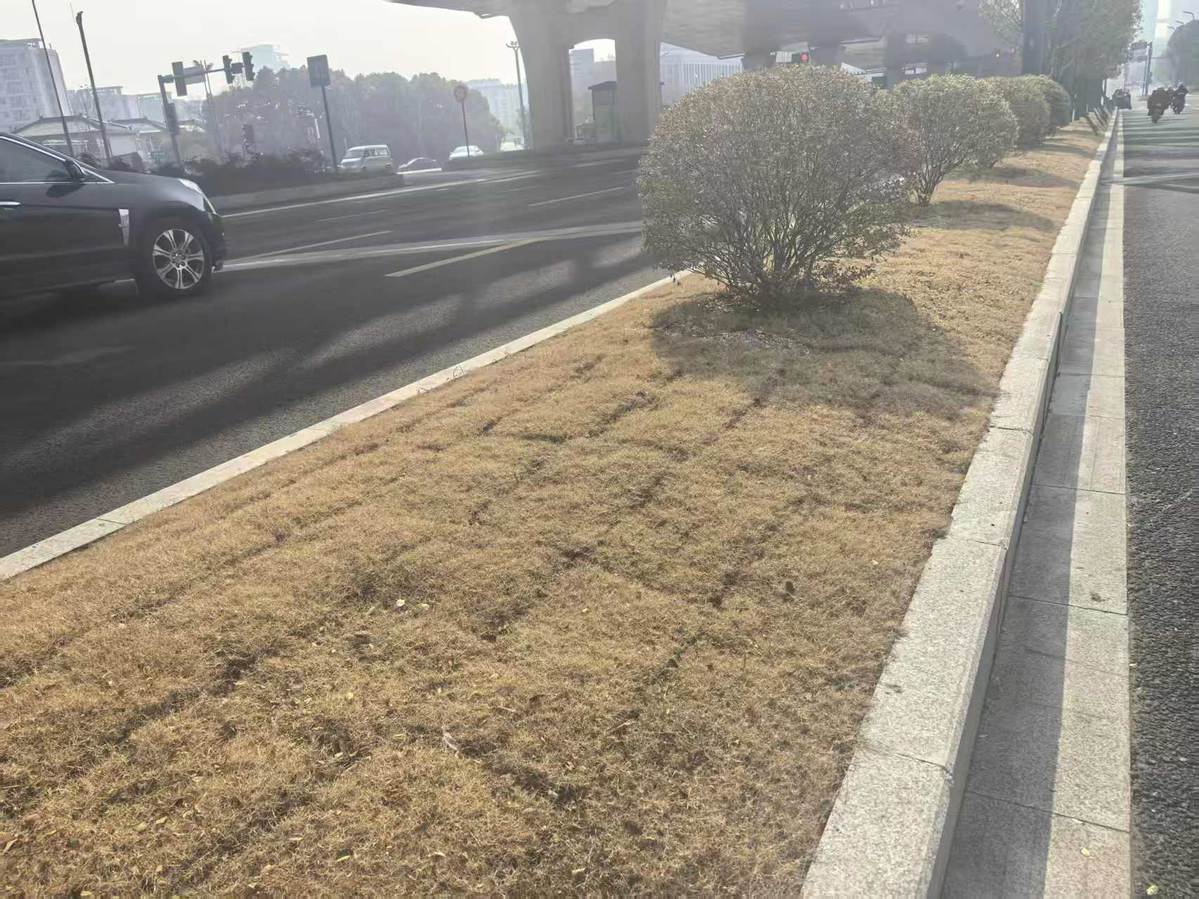 记者在怡庭南路以南的路面看到,这里的草皮的确看不出一点绿色,看起来已经全部枯死。记者将问题反映给绿化部门,对方表示将对这里的绿化重点观察,若真的不能返青,将进行补植。