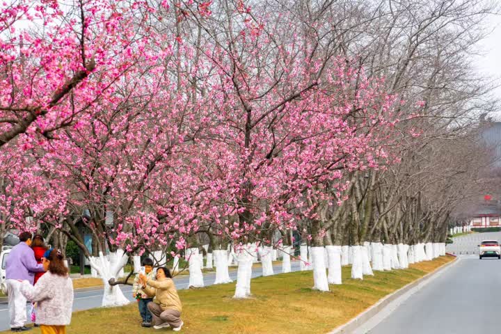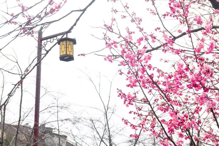 在鉴真路樱花大道、瘦西湖景区、运河三湾、扬州大学校园等地,早樱枝头花苞舒展,粉白相间、如云似霞。微风轻拂,花瓣簌簌飘落,与青砖黛瓦、碧水长堤相映成趣,勾勒出独属于扬州的诗意画卷。不少市民、游客漫步花下,驻足拍照、踏青赏春,尽享春日美好。作为早春标志性花卉,早樱的绽放不仅点亮城市景观,更预示着“烟花三月下扬州”的旅游旺季即将到来。