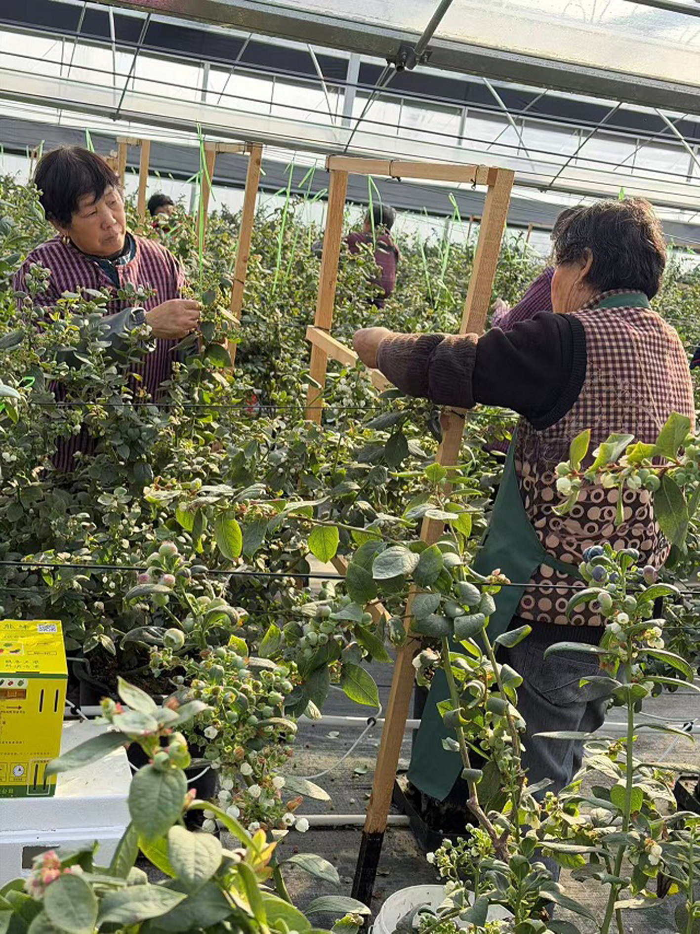好果源于好品,好品依靠科技。“咱们的蓝莓能长得这么饱满、口感香甜脆,靠的是科学种植和精细管理。”盛蓝农业科技负责人吴雅浚介绍,为培育高品质蓝莓,企业在种植上精耕细作,积极引进以色列先进的自动化水肥滴灌技术,通过智能化系统对温湿度进行精准调控,并结合水肥一体化节水灌溉,全方位满足蓝莓生长需求;同时采用无土栽培模式,从源头杜绝土壤病虫害,让蓝莓植株始终保持最佳生长状态。
