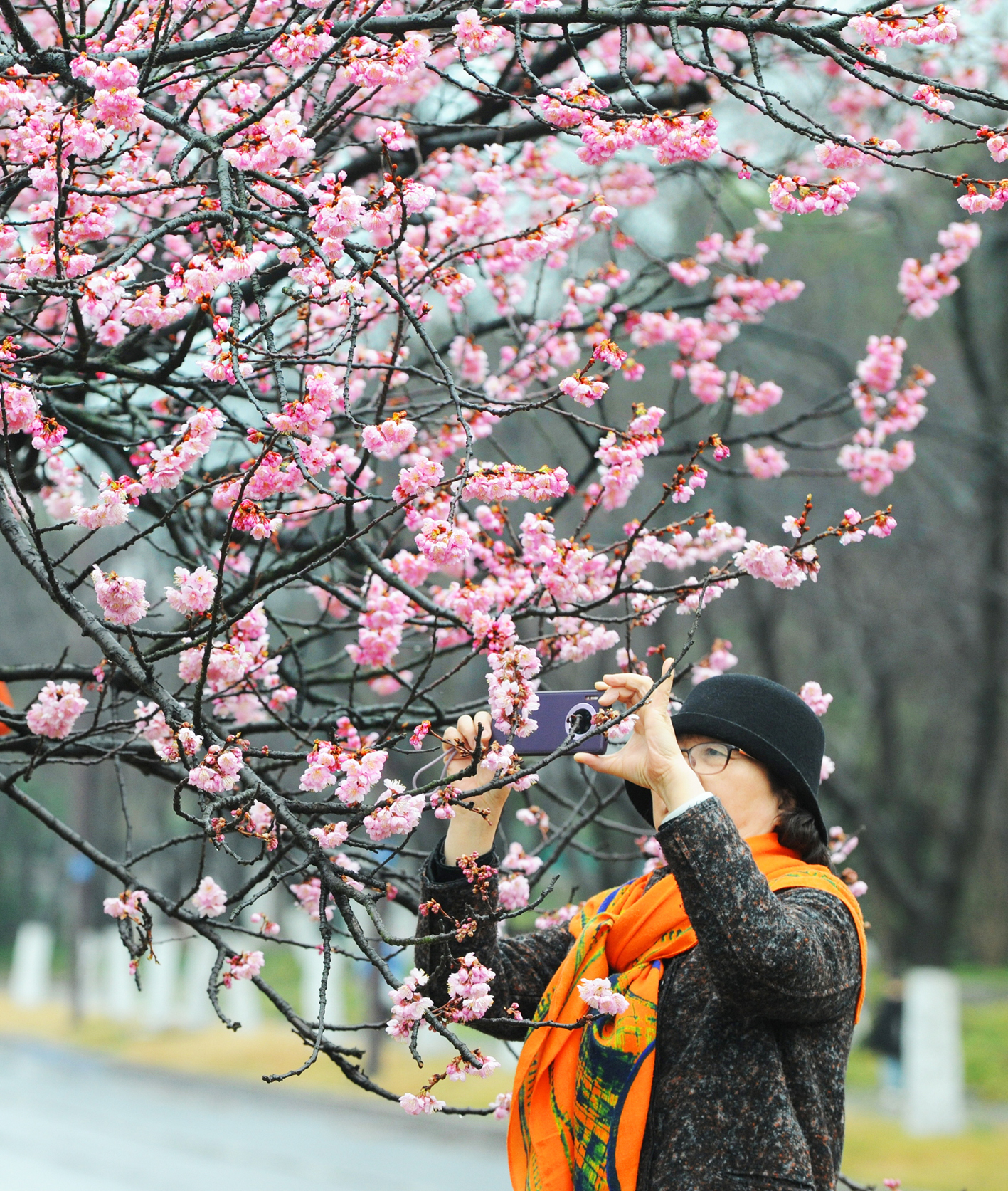 春回大地,连日春雨淅淅沥沥润扬城,记者在鉴真路上看到“樱花大道”美丽的早樱已率先绽放,粉红色花瓣层层叠叠,在春风的吹拂下花朵轻轻摇曳,散发出诱人芳香,引来众多游客与市民冒雨观赏、拍照。据悉,不日,这里的逾千株樱花将竞相绽放,与先盛开的早樱相辉映,烘托出扬城独特而又令人陶醉的浪漫春色。 程曦 摄