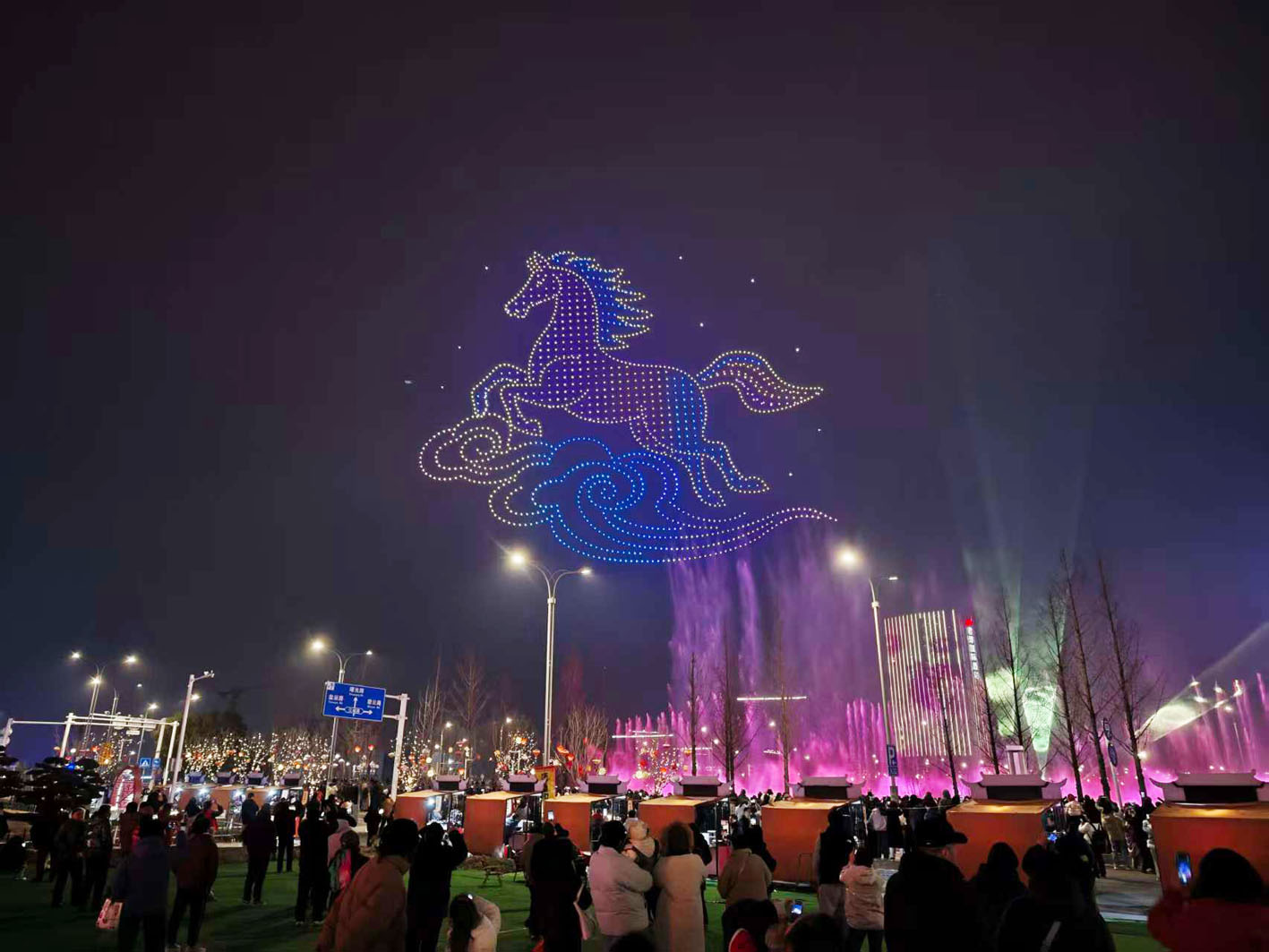 还没等大家回过神来,一匹骏马踏着祥云飞驰而来,蹄下生花,气势如虹。那是“马踏祥云”的吉祥意象,也寄托着对新一年奔腾向上的祝愿。