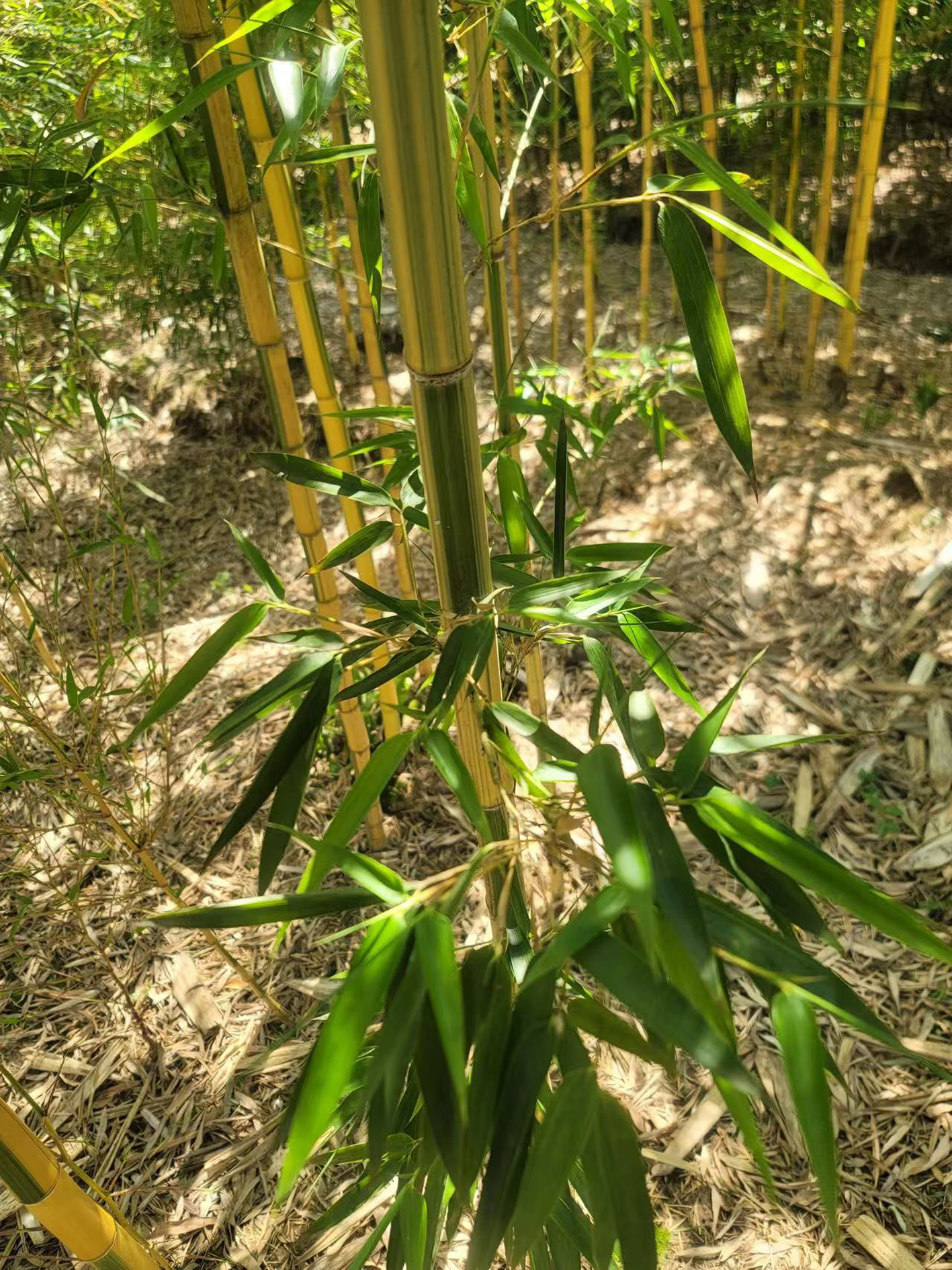 “一个新品种的诞生,绝对是万里挑一。”禹在定蹲在竹林中,轻抚着“绿丝绦”的竹秆感慨道。十余年前,他在近万株青秆竹中偶然发现一株金黄色芽变植株,如获至宝。此后,他通过断鞭隔离、分裂繁殖、芽变选种、分离培养等技术攻关,历经十余年精心管护,终于培育出性状稳定、观赏价值突出的新品种。