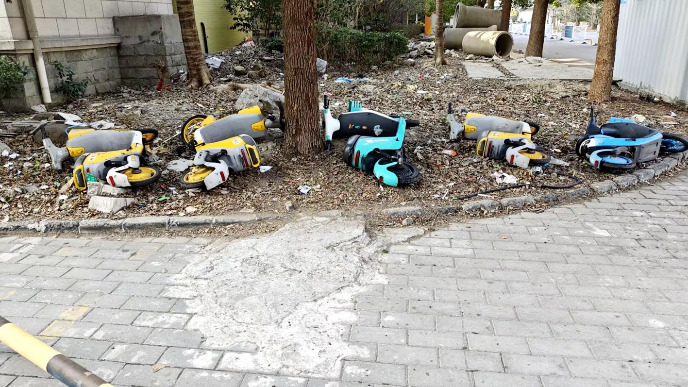 歪倒的共享电单车