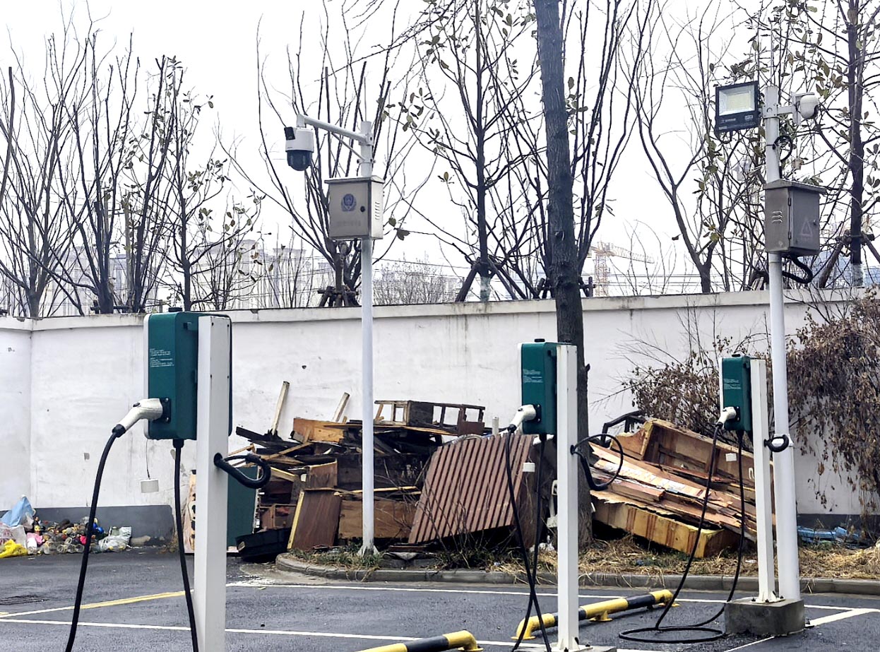 充电桩旁边的废木板