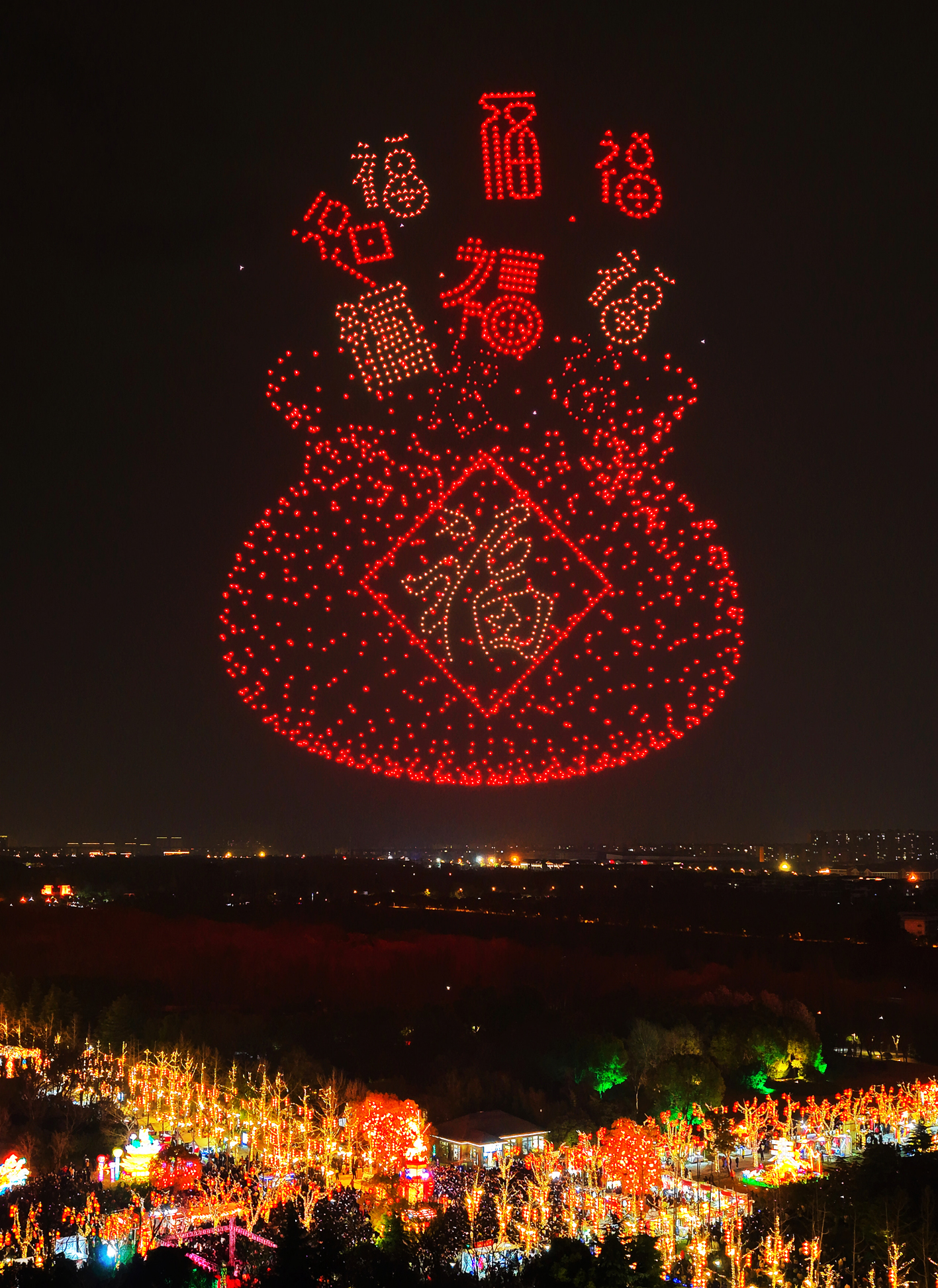 2月28日,无人机灯光秀闪耀古城夜空。 孟德龙 摄