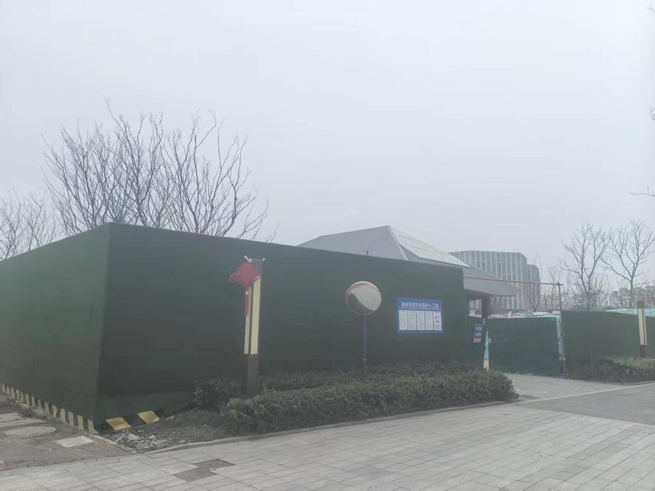 记者4日上午在这座杨柳青公园看到,公园四周还被铁皮围挡围着,朝东的围挡上张贴的牌子显示,园内正在建设公园管理中心用房。从敞开的朝东铁门走进公园,一座仿古式建筑主体已经建成,正在内部装修,它就是公园管理用房。