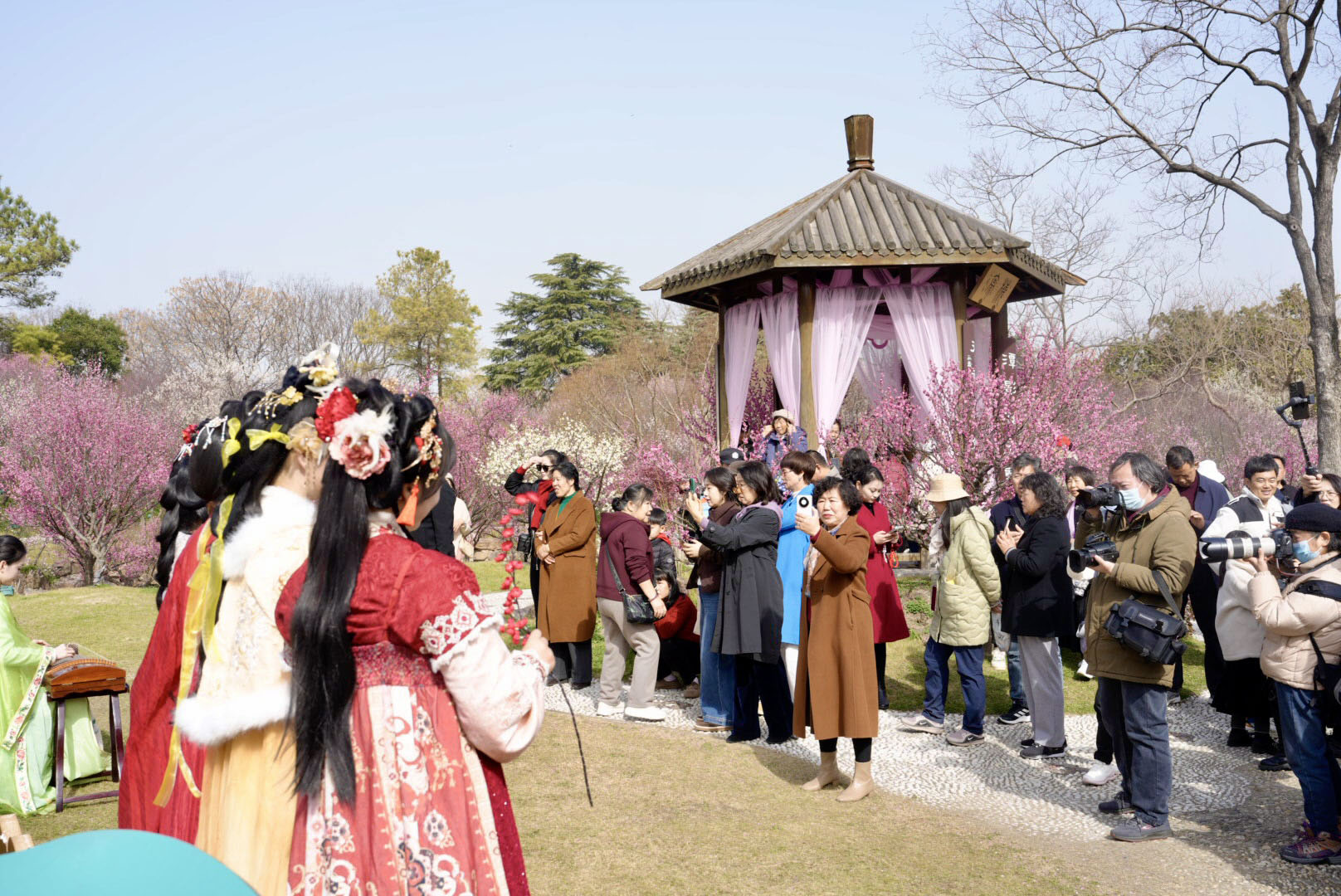 凤凰岛的梅花坞四面环水,像个被春天私藏的岛屿,梅花开在这里,不像展览,更像“隐居”。