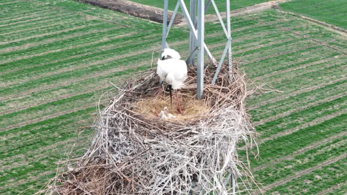 春日水暖,万物复苏,扬州江都小纪镇的田野间传来一则生态喜讯。素有“鸟中大熊猫”之称的国家一级保护动物东方白鹳,在当地一处高压线杆上筑巢繁衍,顺利迎来新生命。珍稀鸟类家族再添新成员的美好画面,正在水乡大地温情上演。