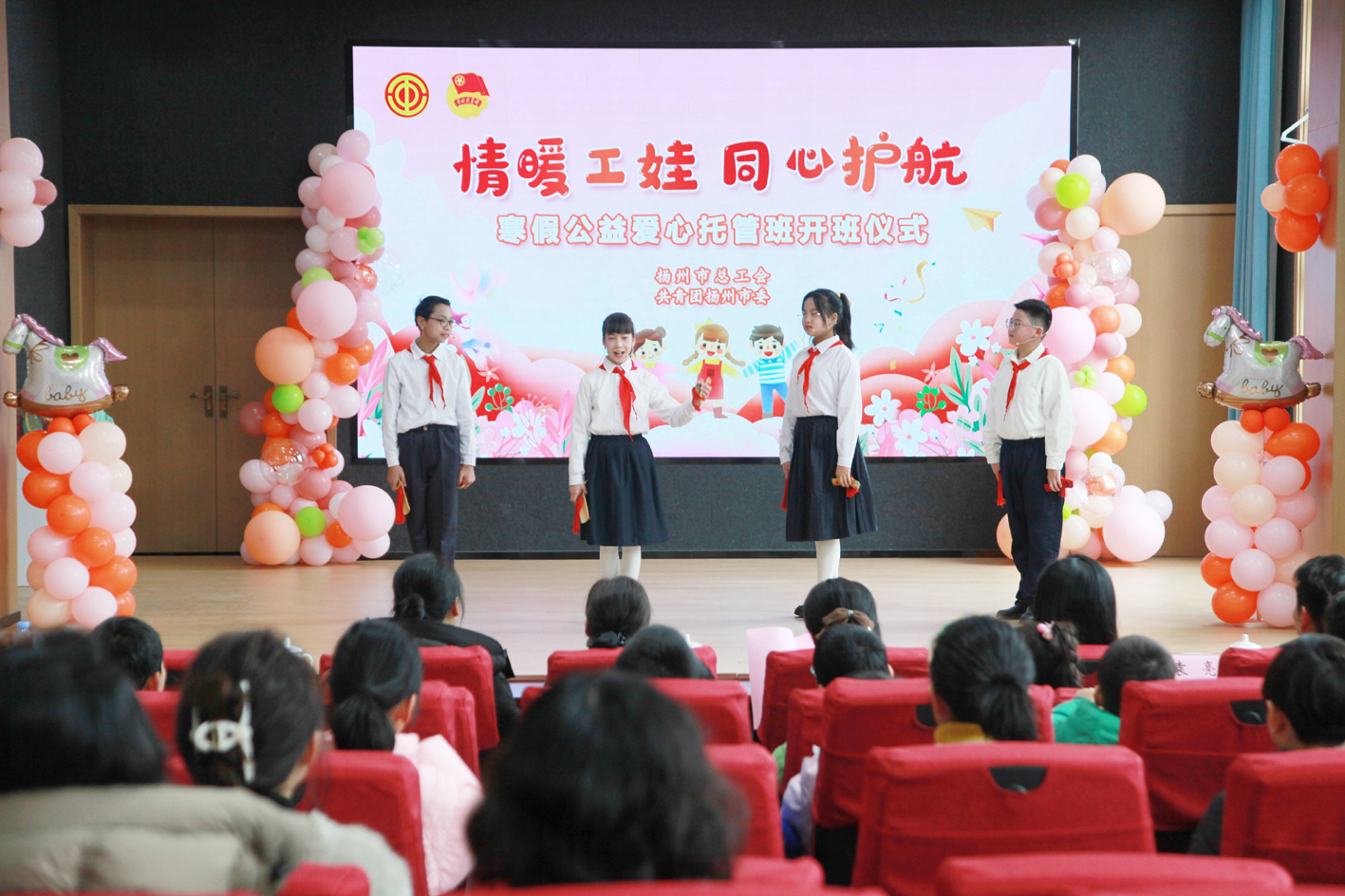 2月10日上午,扬州市工人文化宫职工剧场内,孩子们活泼可爱的快板表演《我是扬州娃》拉开帷幕。“情暖工娃 同心护航”寒假公益爱心托管班正式开班。一位网约车司机送完孩子后感慨道:“以前寒假最发愁,现在工会帮我们解决了大问题。”
