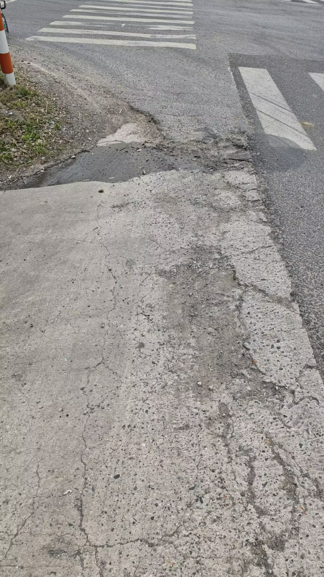 之后,记者来到了司徒庙路和甘八路交叉口处的花瓶岗,看到交叉口的西北角和西南角,路面存在破损的情况,有着大小不一的坑洞,路面凹凸不平。记者发现,非机动车和机动车辆经过交叉口这两处拐角处时,容易出现颠簸。破损的路面靠近斑马线,市民过马路时,通行也容易受到影响。