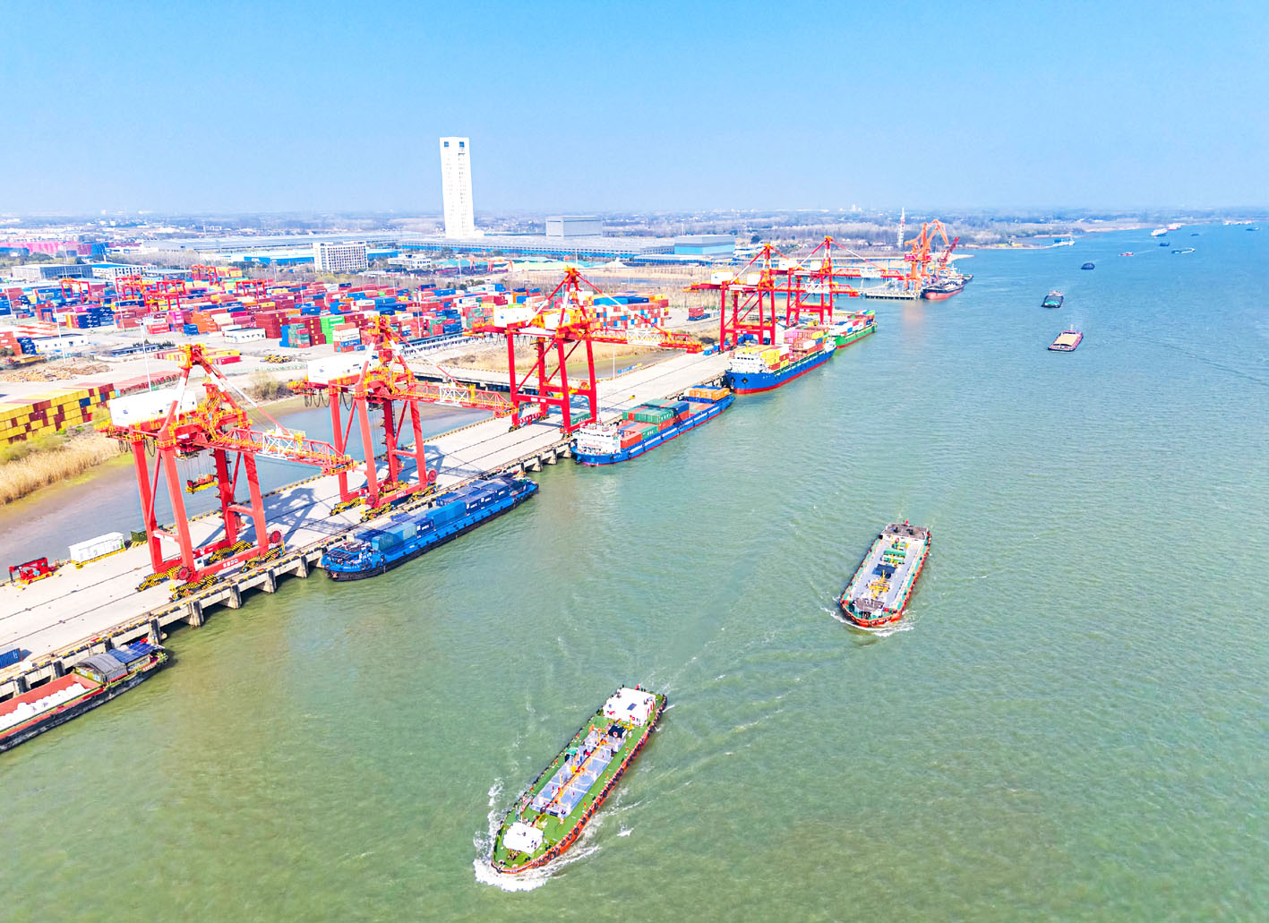 3月10日,海关总署发布数据显示,今年前2个月,中国货物贸易进出口总值7.73万亿元,同比增长18.3%。这是3月10日拍摄的江苏扬州港。新华社发(任飞 摄)