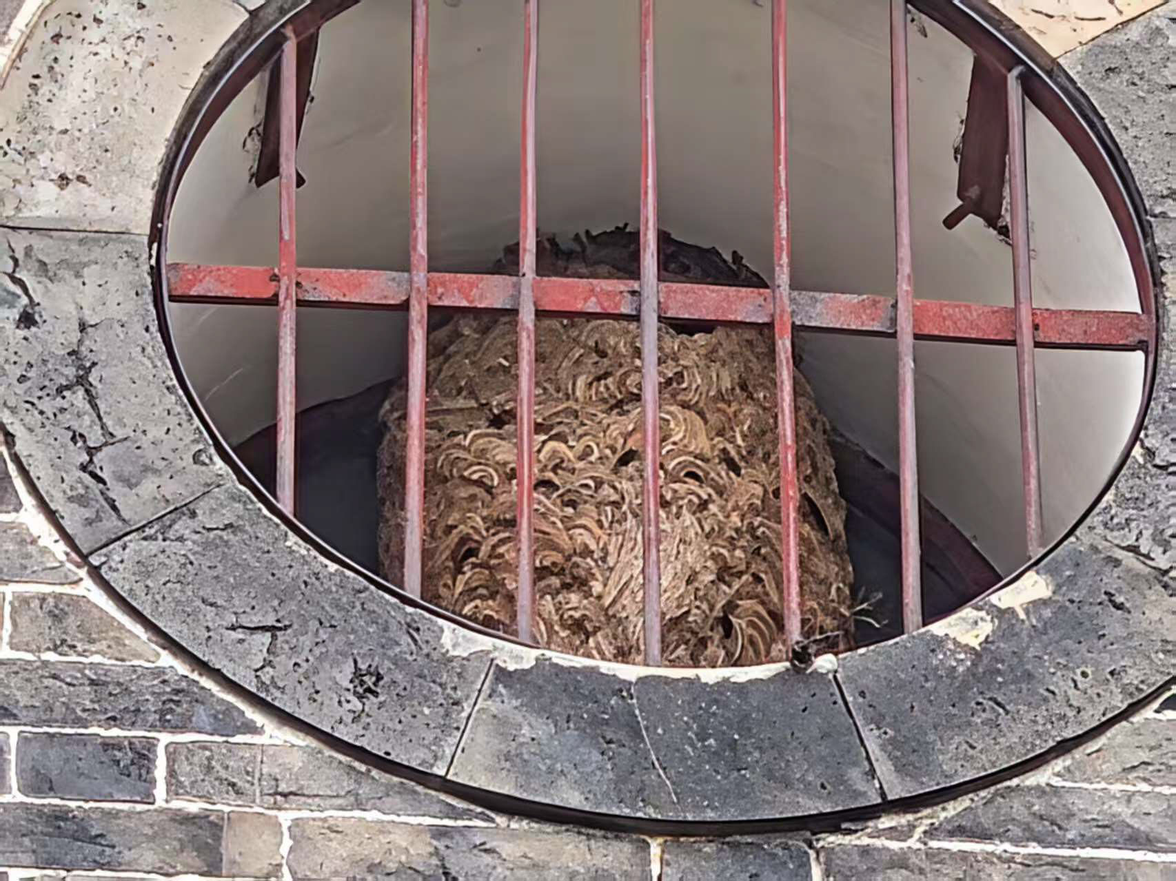 网友朱先生是浙江游客,他告诉记者,10日,他慕名游览扬州天宁寺,在参观时,发现华严阁西墙上方的窗户上有一个巨大的马蜂窝。“旅游景点里有这么大的马蜂窝,不太安全,尤其很快就要到旅游旺季了,要是有游客被马蜂蜇伤就不好了。”朱先生表示。