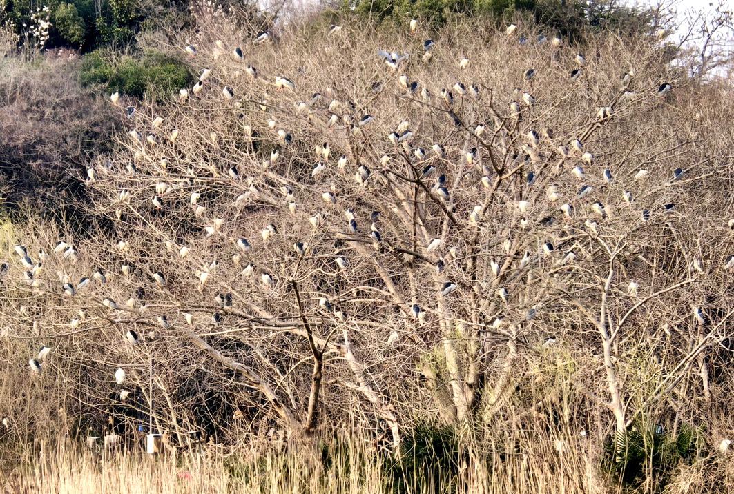 近日,宋夹城体育休闲公园内,一棵高大的乔木上落满了成群的夜鹭。近年来,宋夹城已观测到白鹭、夜鹭、黑水鸡等数十种野生鸟类,种类和数量逐年递增,成为扬州生态环境持续向好的生动见证。徐连峰 司新利 摄