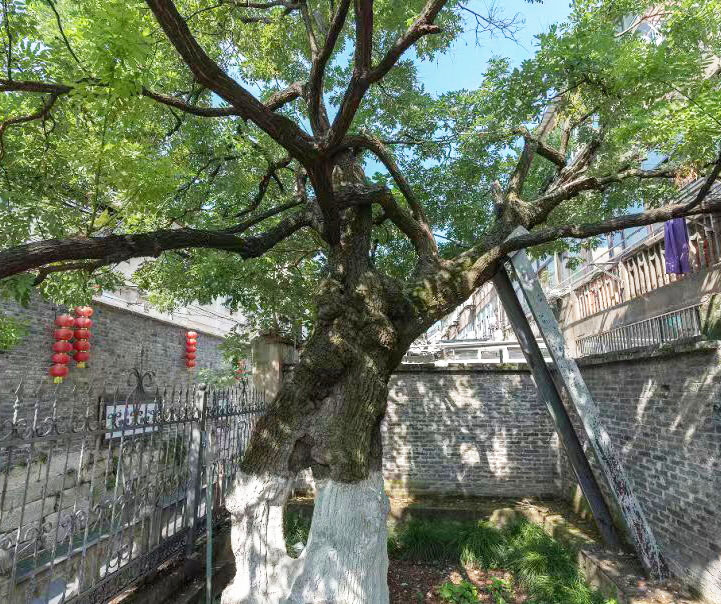 驼岭巷10号的唐槐是国家一级保护古树,也是全国100株最美古树中的最美古槐树。