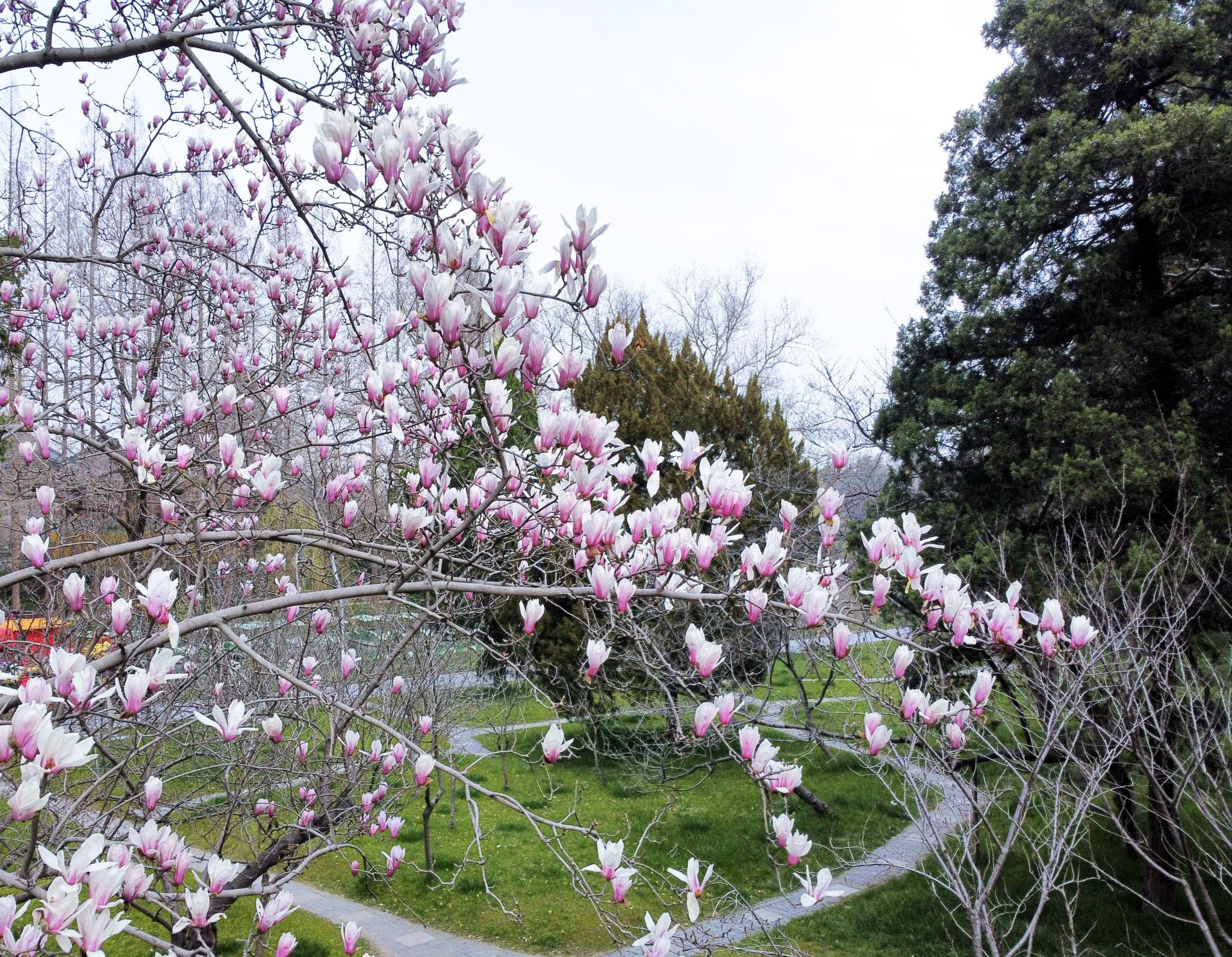 惊蛰过半,仍是早春。早樱已经凋零,美人梅、紫叶李刚刚进入盛花期。唯有玉兰,一茬又一茬地开着,同一个品种,因小环境的差异,花期也不尽相同。