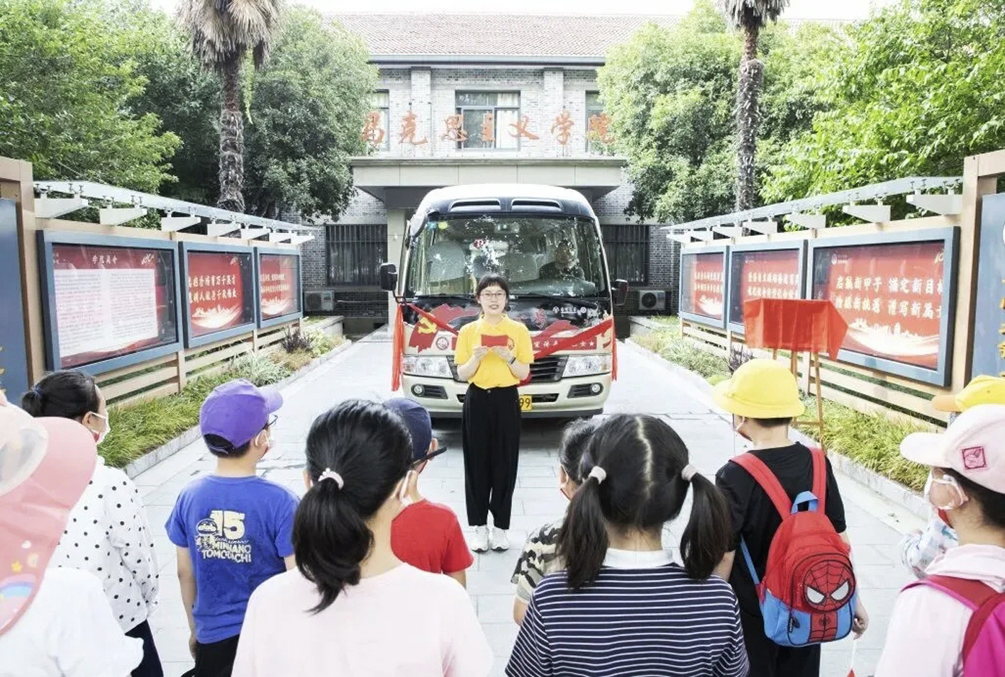 更特别的,是穿梭在扬州街头的“红色巴士”。一辆普通公交车,被打造成流动的思政课堂。车身是红色主题,车厢里是微宣讲阵地,线路串联起红色旧址、运河地标、文明实践点。宣讲员随车讲解,边走边讲、边看边学,乘客一路乘车、一路听课、一路感悟。