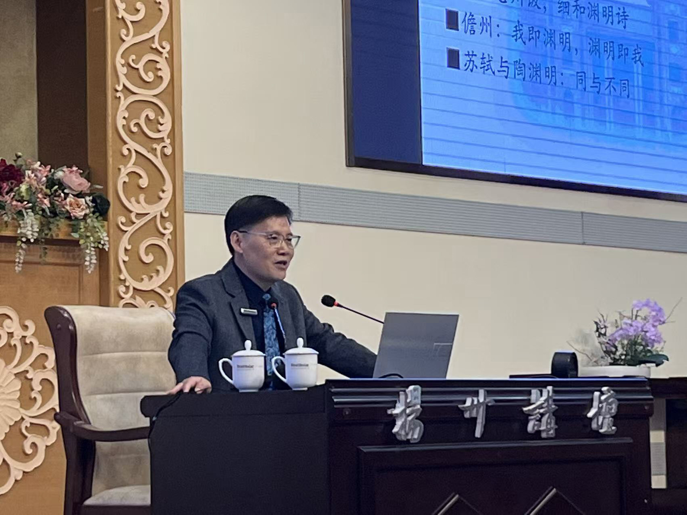 3月14日下午,中山大学中国语言文学系教授、博士生导师、系主任,《中山大学学报》(社会科学版)主编彭玉平登临扬州讲坛,主讲《苏轼与陶渊明》。彭玉平是教育部长江学者特聘教授,研究成果丰硕,曾登临中央电视台《百家讲坛》,也曾担任央视《大唐诗人传》《大宋词人传》《中国书法大会》《山水间的家》等节目文化嘉宾。在本期扬州讲坛中,彭玉平通过诗词解读苏轼对陶渊明的崇拜与追随,带领听众一同感悟苏轼旷达的心境。本报根据讲座录音整理成文,以飨读者。