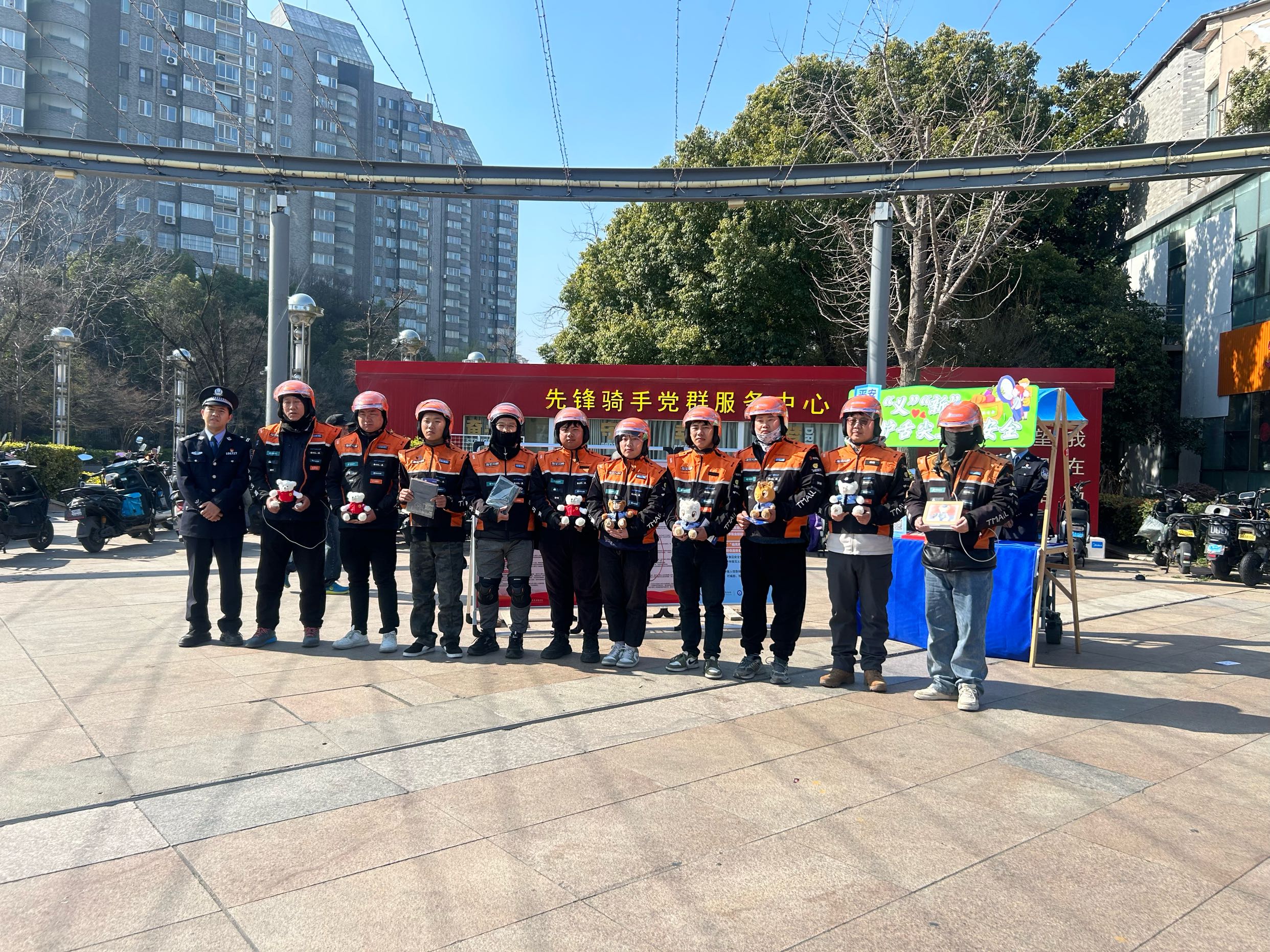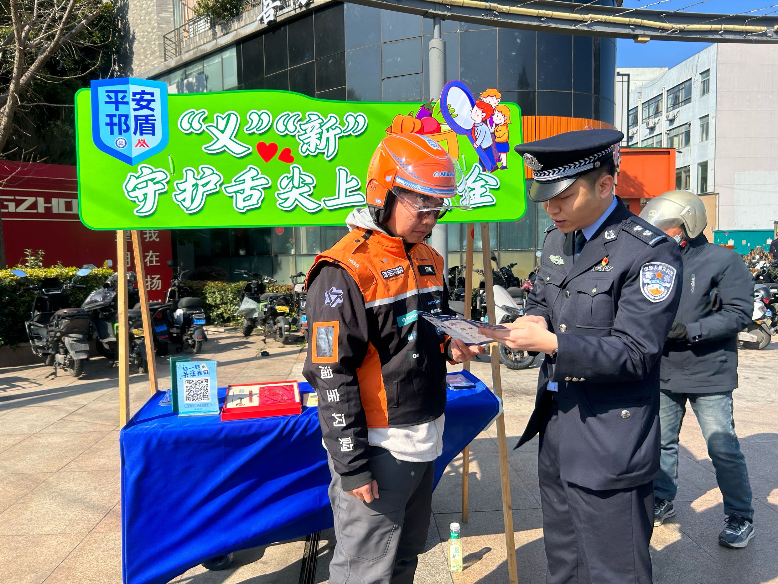 13日上午9时30分,民警在望月路广场支起了宣传摊点,现场为外卖小哥们解读活动详情并发放宣传资料。活动现场,外卖小哥们很快聚集在摊点周围,一边饶有兴致地了解活动内容,一边听民警们科普与食品相关的安全知识。憨态可掬的警察小熊、马年限定警察小马、各类与见义勇为有关的小周边…完成互动后,不少外卖小哥还拿到了心仪的小礼物。“这个活动非常有意义,我们也希望能尽自己的力量让大家吃得更安全。”现场,外卖员们纷纷表态。