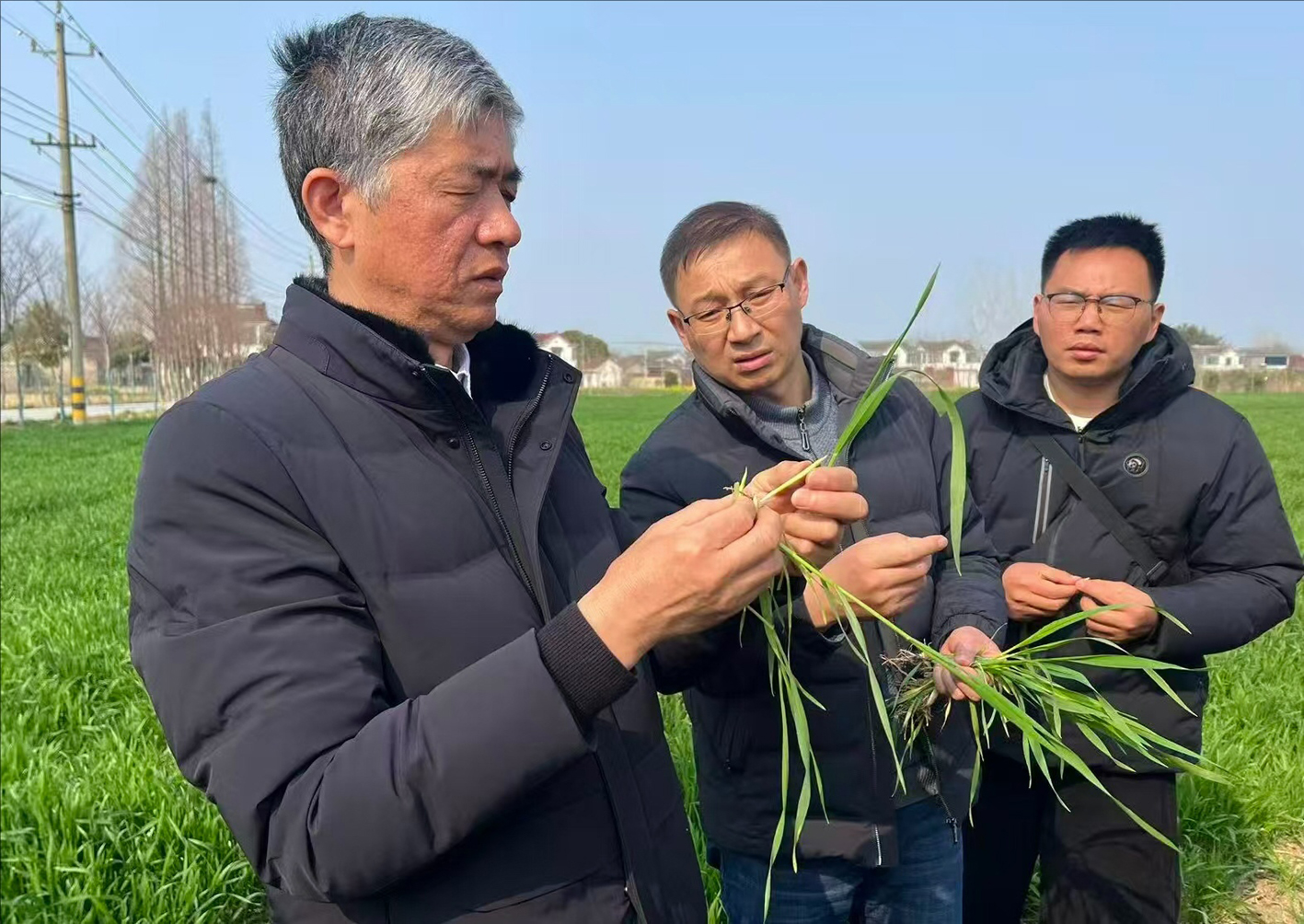 在头桥镇庆丰村一处麦田里,看到农业推广研究员谢成林到来,几名种田大户围拢上来,仔细倾听他正在讲解的麦田管理关键性技术。