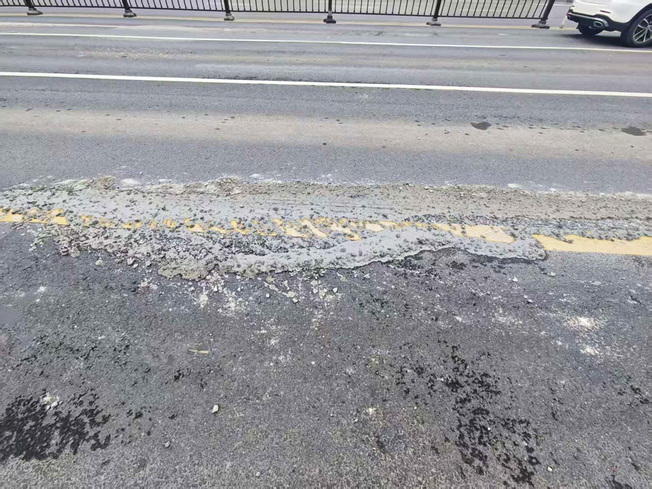 混凝土撒落在行车道上