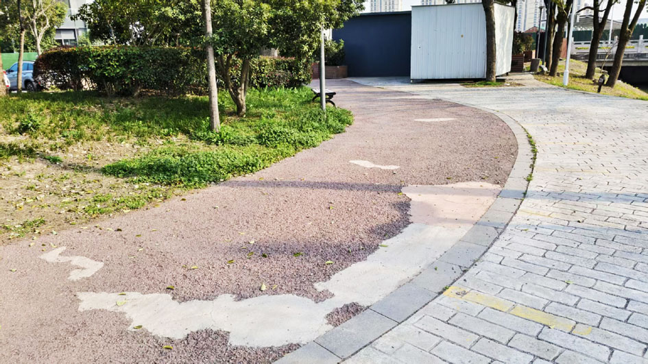 步道损坏,颜色不统一