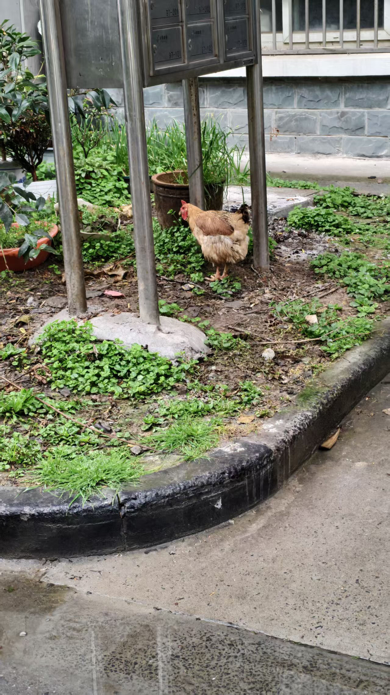 记者看到,少数楼栋附近空地、绿化带区域有鸡在走动、啄食,刚下过雨的泥地上面有鸡爪印残留。