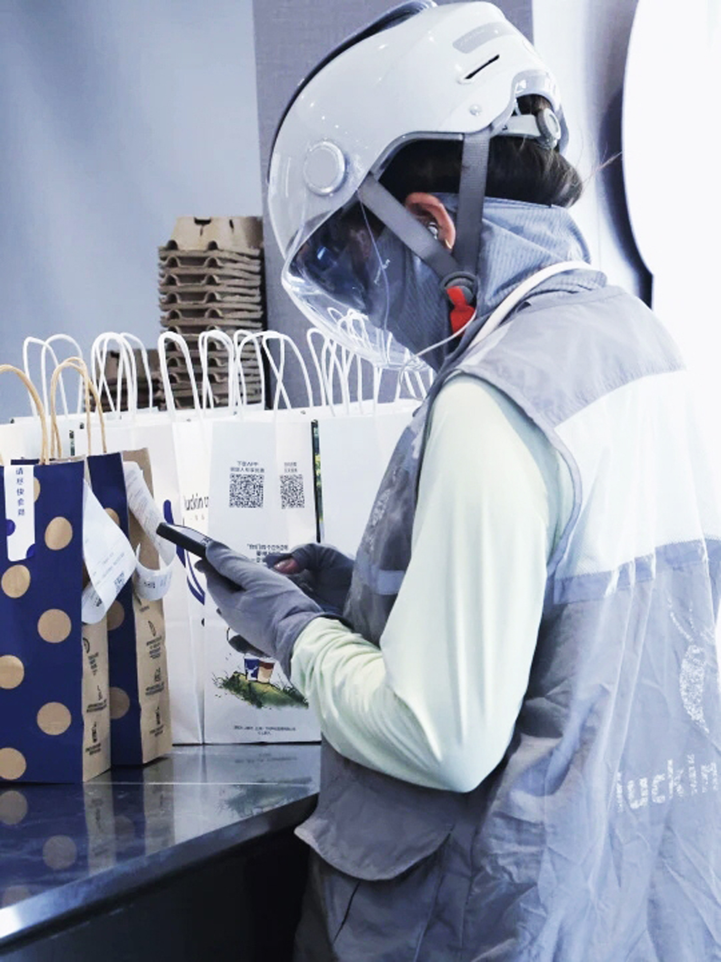 清晨8点半,广陵区沙头镇瑞幸咖啡店门口,35岁的外卖员靖艾花的手机上,不停跳出订单。拎起热腾腾的咖啡,靖艾花骑上电动车,赶往4公里外的新民洲。