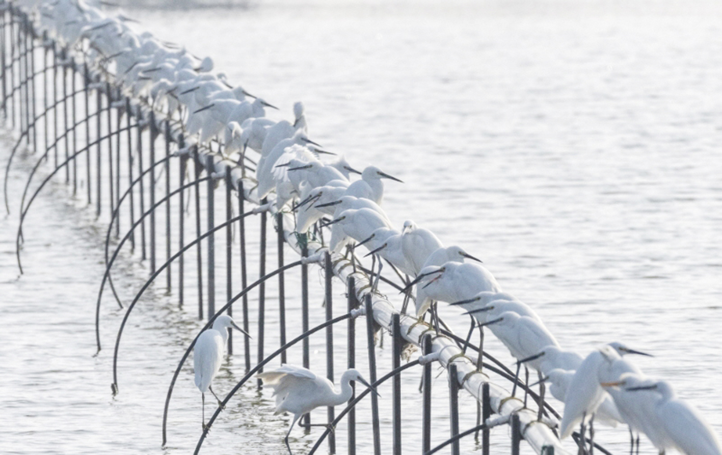 资料图片:仪征的田园、水库及沼泽地周边成群的白鹭。裴习健 司新利 摄