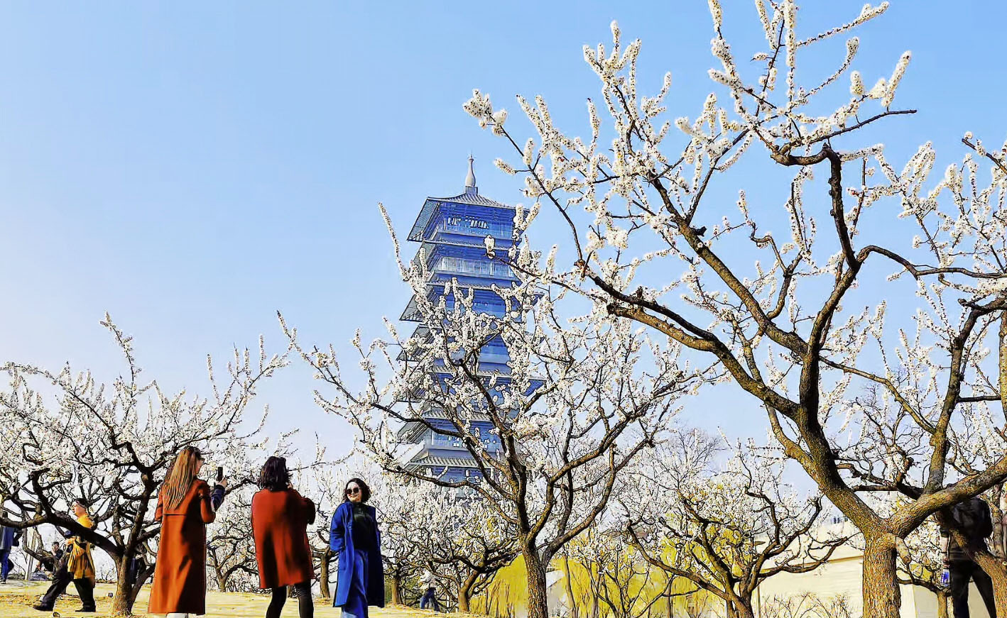扬州中国大运河博物馆周边,大片杏林正值盛花期,粉白相间的杏花缀满枝头,与大运塔、今月桥及古运河相映,引得游客纷至沓来。沙光明 李海东 司新利 摄