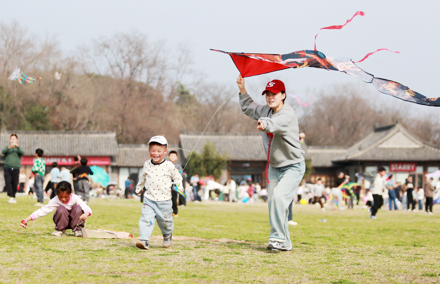3月22日,春光明媚,正是踏青好时节,许多家长带着孩子来到风筝广场,放飞风筝,亲近自然,拥抱春天,乐享春日美好时光。 孟德龙 摄
