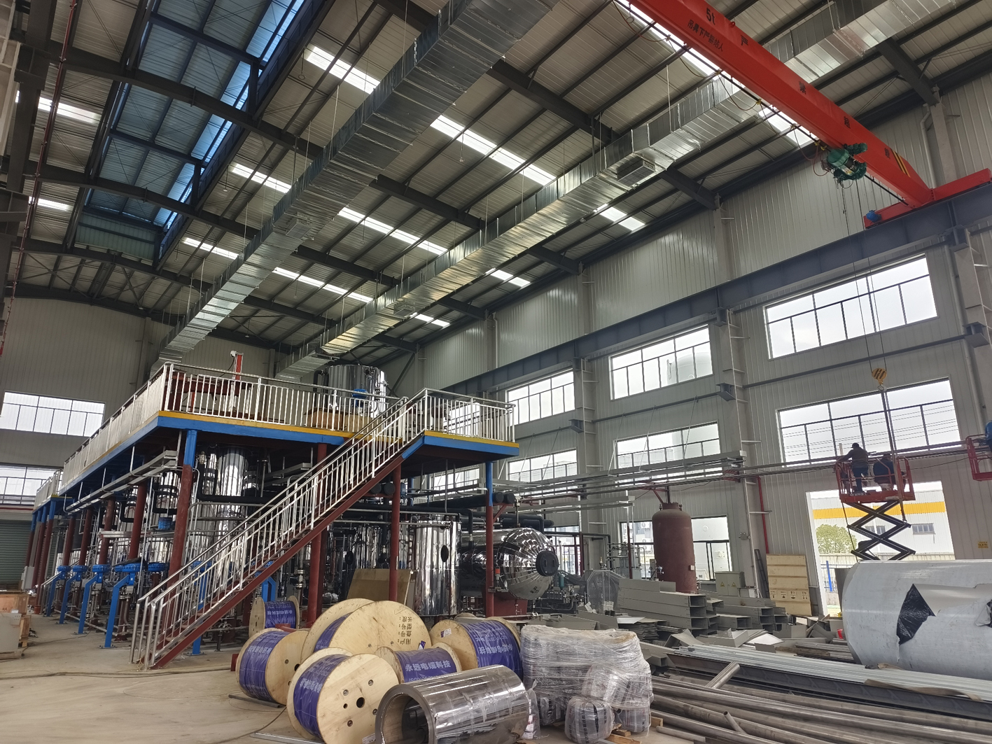 “这些干燥釜可是我们的‘产能担当’,有了它们,咱们的产能相较于中试产线直接提升几十倍。”项目负责人沈艳生一边带领记者参观,一边介绍项目进展,“目前主要设备都已经就位,工作人员正在抓紧开展安全调试,剩下的部分配套设备,10天内就能全部安装完毕,预计4月份就能正式试生产。”