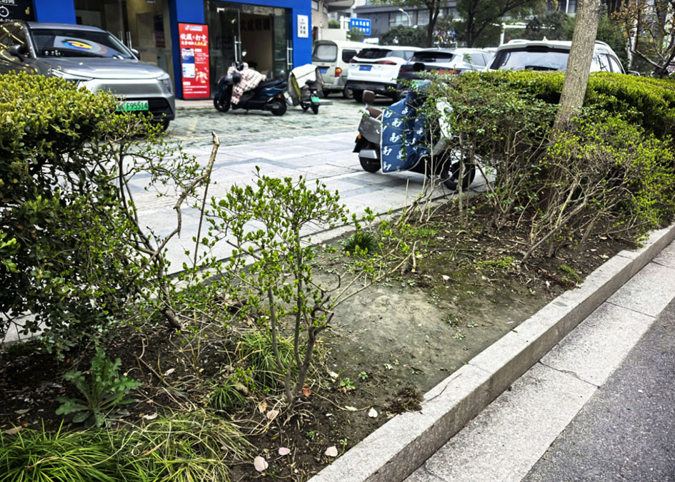 被行人踩秃的绿化带