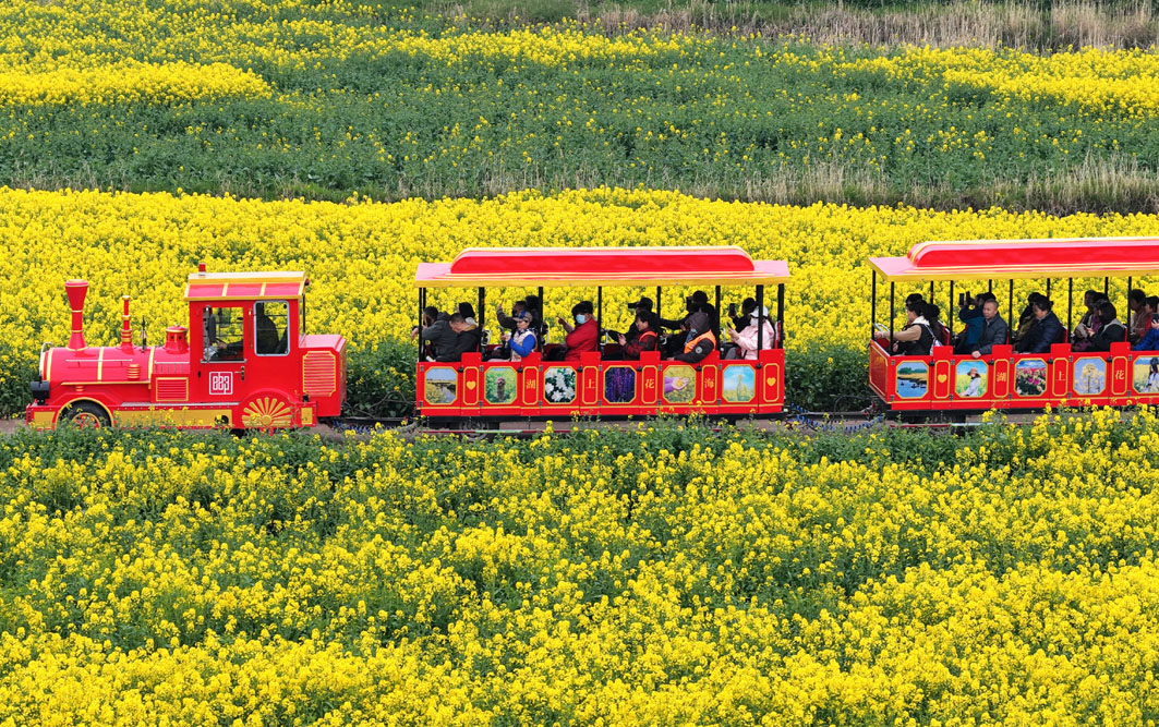 3月20日,高邮市第九届湖上花海文化旅游季在高邮湖畔启幕,首个周末就迎来客流高峰,2600亩油菜花进入盛花期,金黄的花田与烟波浩渺的高邮湖相映成趣。走进景区内,乘坐小火车穿行花田,感受被金色花浪包围的浪漫;也可乘乌篷船泛舟湖上,欣赏花海与碧波相映成趣的独特景致;或漫步花间小径,细嗅花香,在春日暖阳中静享慢时光。景区内新增的莫奈花园、花田“咖”位站等打卡点更是游人络绎不绝。