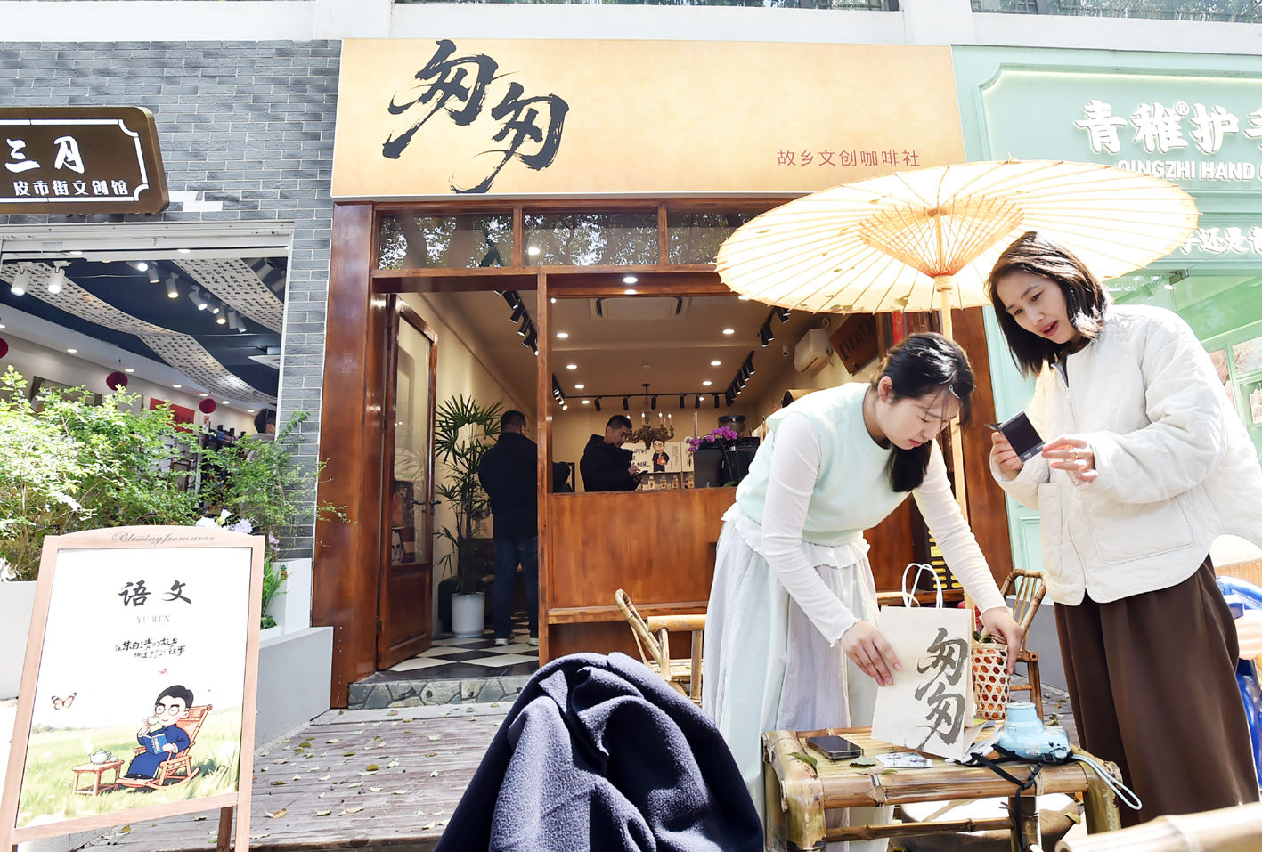 记者注意到,店里随处可见朱自清的Q版造型,生动可爱,与印象中先生的严肃形象截然不同。张雨为其取名“阿清”,也是对朱自清先生的致敬,“我希望用年轻人的方式,让文学经典重新走进大众。”